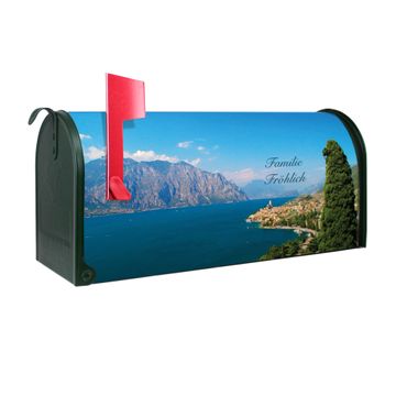 Unser amerikanischer Briefkasten mit dem Motiv Gardasee hat ein sehr ansprechendes und ausgefallenes Design, ist in der Grundfarbe weiß, grün oder schwarz erhältlich. Damit entlocken Sie Ihren Nachbarn und dem Postboten immer wieder ein Lächeln. Die Mailbox ist ein Original Import aus Mississippi USA und wird von unserer kleinen Manufaktur in Sachsen von Hand veredelt. Die US-Mailbox bietet ausreichend Platz auch für große Sendungen, eine Fahne die Ihnen Post anzeigt, wetterfestes und äußerst stabiles Material - so macht Post empfangen Freude.