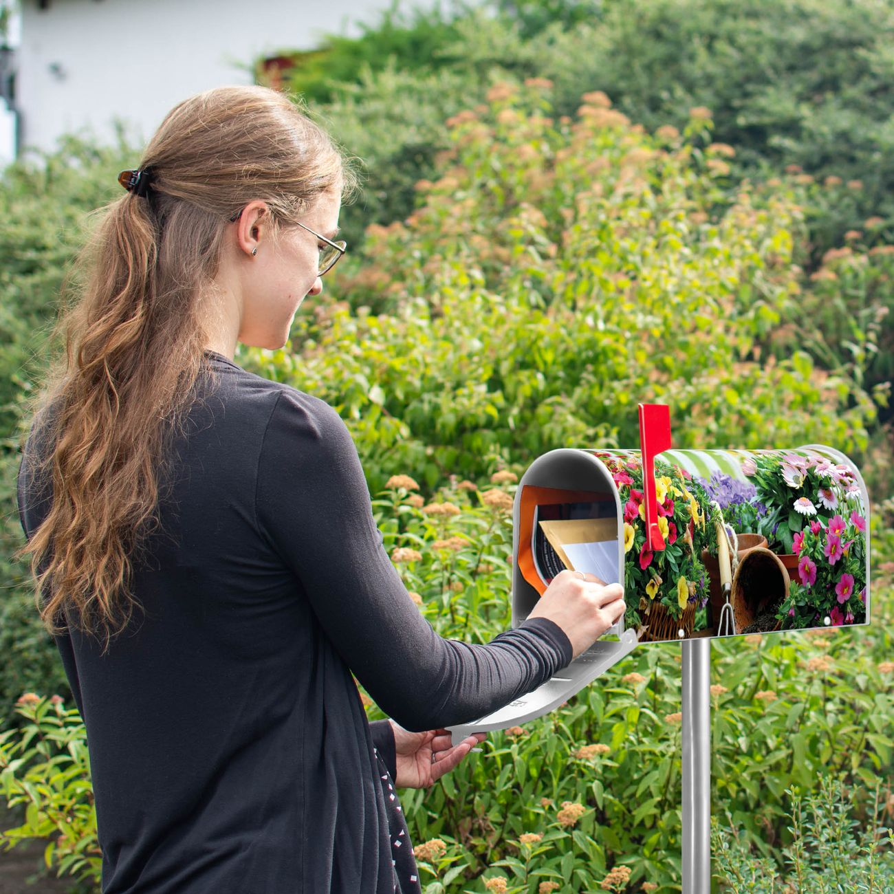 Unser amerikanischer Briefkasten mit dem Motiv Gartenfreude hat ein sehr ansprechendes und ausgefallenes Design, ist in der Grundfarbe weiß, grün oder schwarz erhältlich. Damit entlocken Sie Ihren Nachbarn und dem Postboten immer wieder ein Lächeln. Die Mailbox ist ein Original Import aus Mississippi USA und wird von unserer kleinen Manufaktur in Sachsen von Hand veredelt. Die US-Mailbox bietet ausreichend Platz auch für große Sendungen, eine Fahne die Ihnen Post anzeigt, wetterfestes und äußerst stabiles Material - so macht Post empfangen Freude.