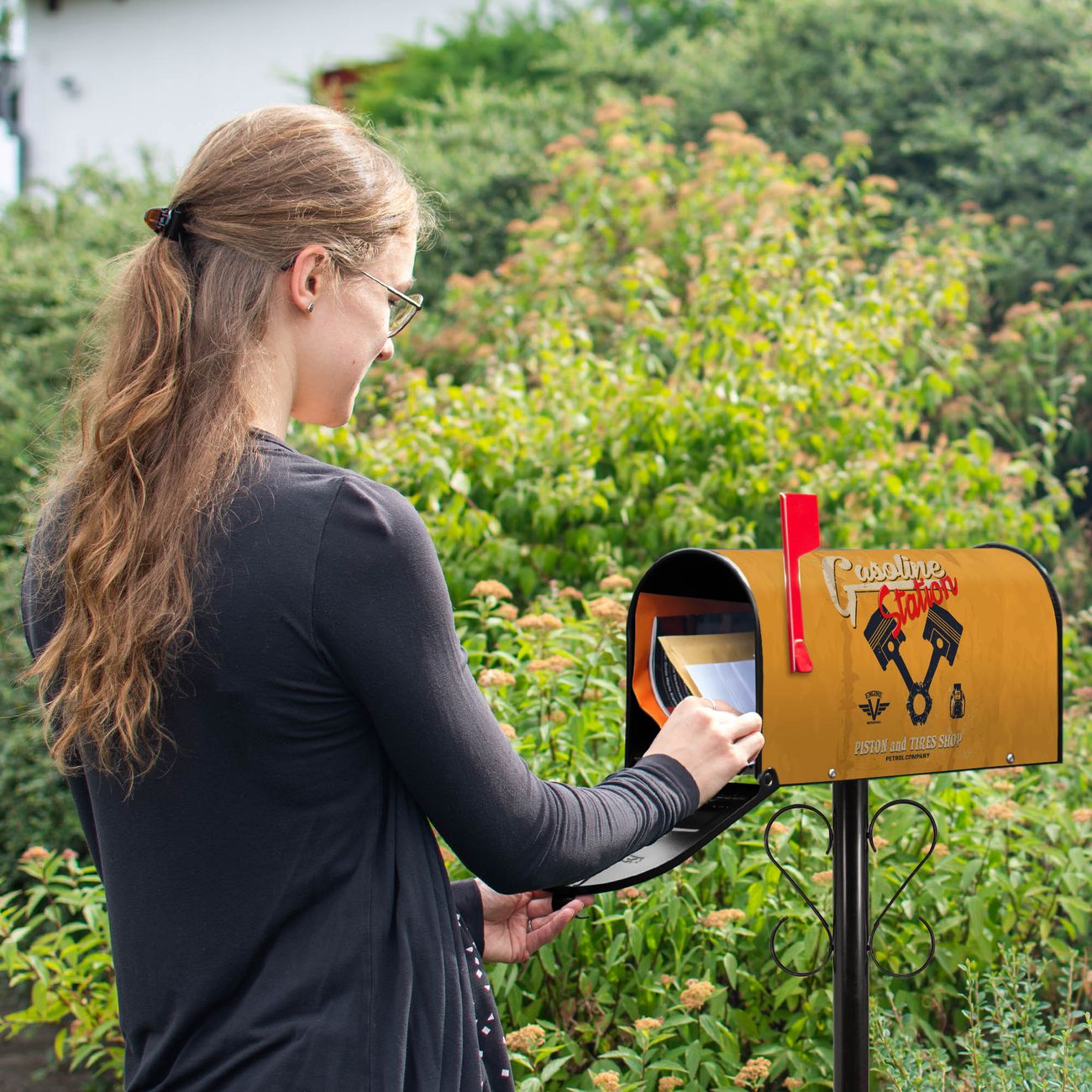Unser amerikanischer Briefkasten mit dem Motiv Gasoline Station hat ein sehr ansprechendes und ausgefallenes Design, ist in der Grundfarbe weiß, grün oder schwarz erhältlich. Damit entlocken Sie Ihren Nachbarn und dem Postboten immer wieder ein Lächeln. Die Mailbox ist ein Original Import aus Mississippi USA und wird von unserer kleinen Manufaktur in Sachsen von Hand veredelt. Die US-Mailbox bietet ausreichend Platz auch für große Sendungen, eine Fahne die Ihnen Post anzeigt, wetterfestes und äußerst stabiles Material - so macht Post empfangen Freude.