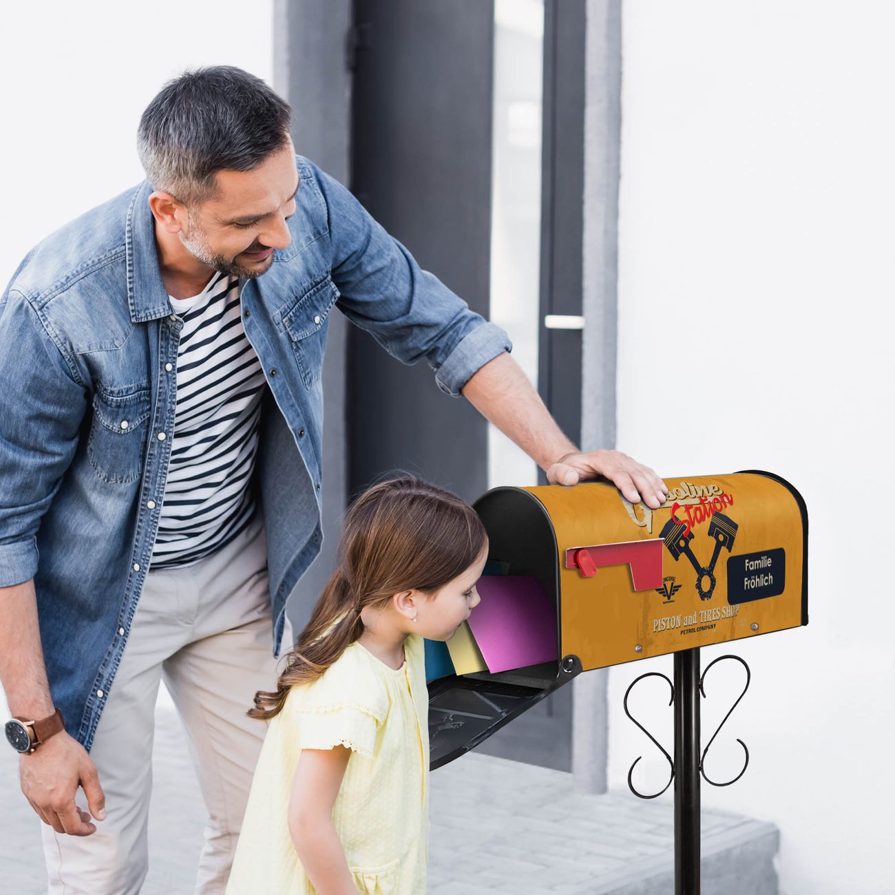 Unser amerikanischer Briefkasten mit dem Motiv Gasoline Station hat ein sehr ansprechendes und ausgefallenes Design, ist in der Grundfarbe weiß, grün oder schwarz erhältlich. Damit entlocken Sie Ihren Nachbarn und dem Postboten immer wieder ein Lächeln. Die Mailbox ist ein Original Import aus Mississippi USA und wird von unserer kleinen Manufaktur in Sachsen von Hand veredelt. Die US-Mailbox bietet ausreichend Platz auch für große Sendungen, eine Fahne die Ihnen Post anzeigt, wetterfestes und äußerst stabiles Material - so macht Post empfangen Freude.