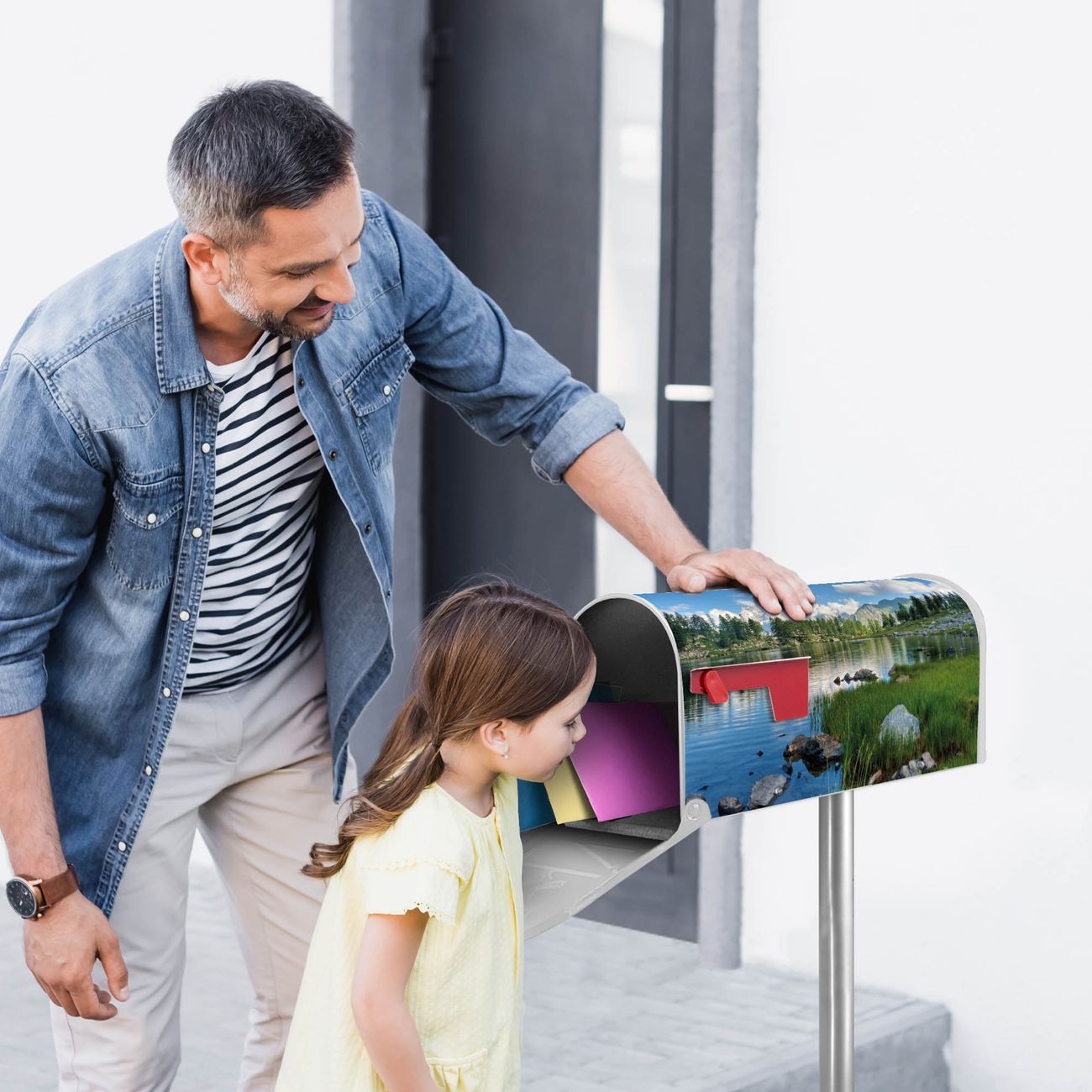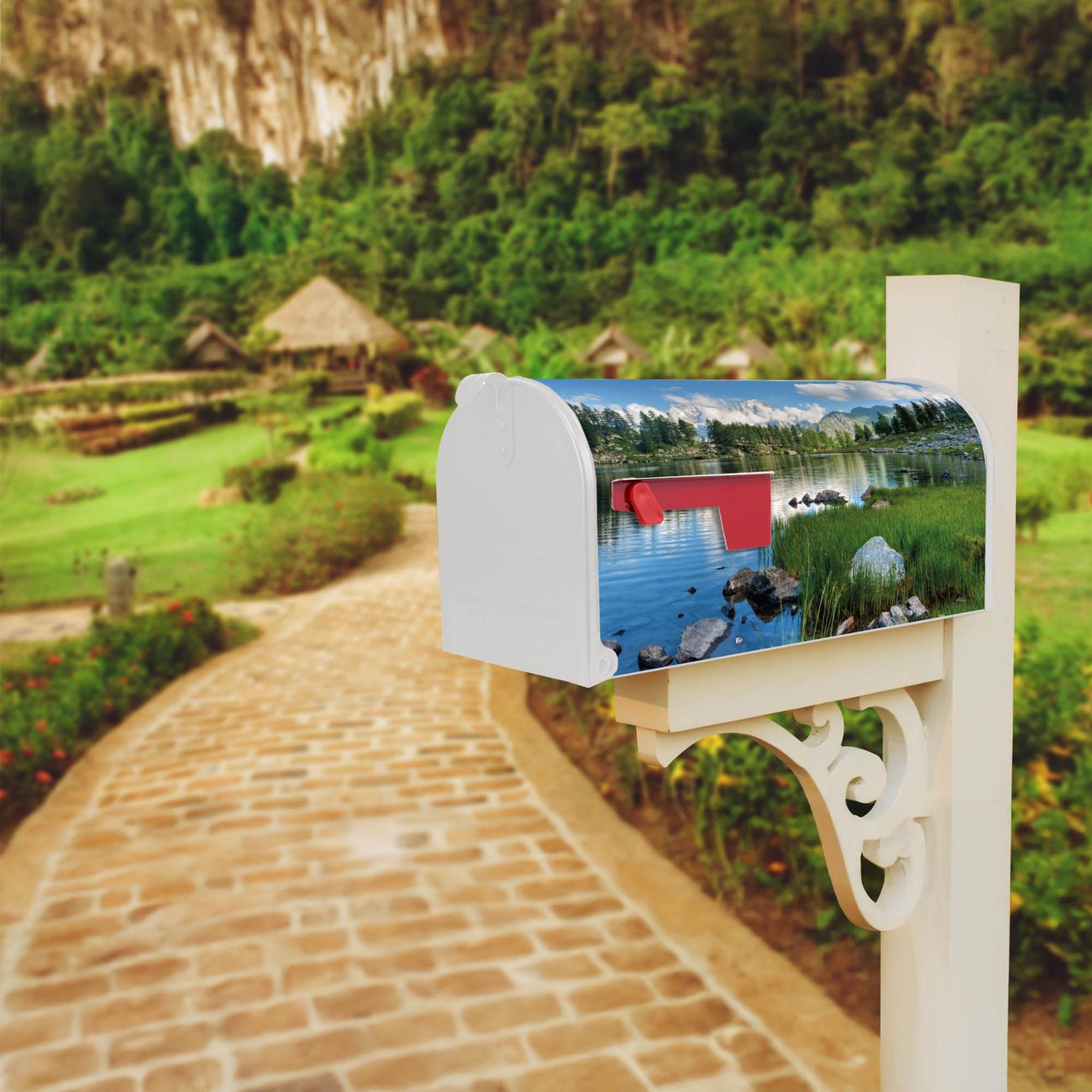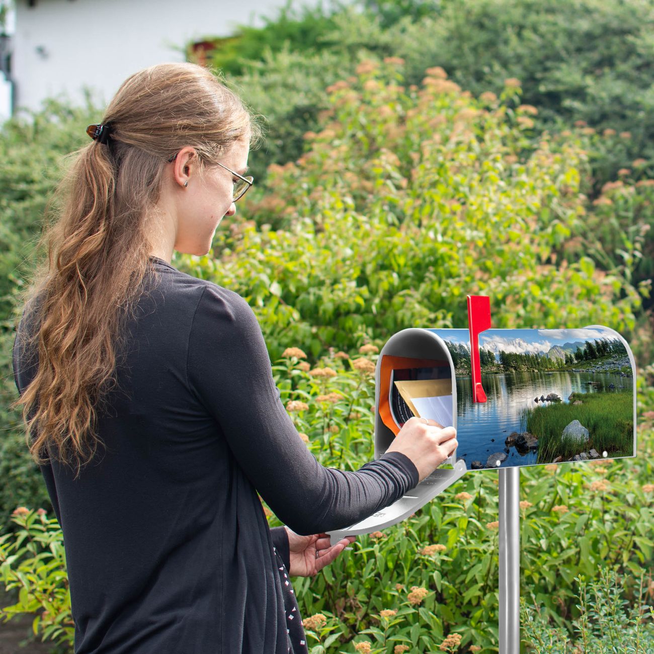 Unser amerikanischer Briefkasten mit dem Motiv Gebirgssee hat ein sehr ansprechendes und ausgefallenes Design, ist in der Grundfarbe weiß, grün oder schwarz erhältlich. Damit entlocken Sie Ihren Nachbarn und dem Postboten immer wieder ein Lächeln. Die Mailbox ist ein Original Import aus Mississippi USA und wird von unserer kleinen Manufaktur in Sachsen von Hand veredelt. Die US-Mailbox bietet ausreichend Platz auch für große Sendungen, eine Fahne die Ihnen Post anzeigt, wetterfestes und äußerst stabiles Material - so macht Post empfangen Freude.