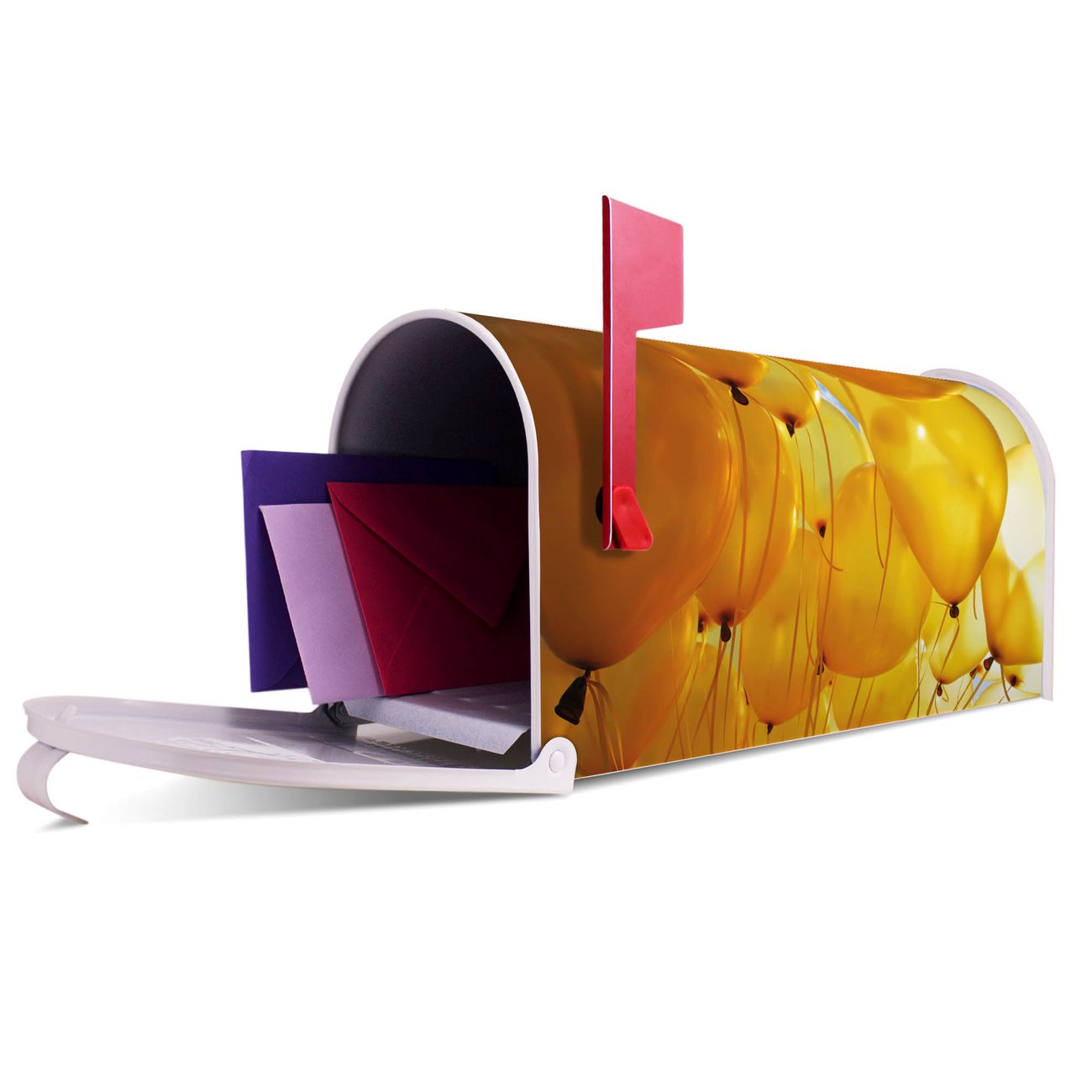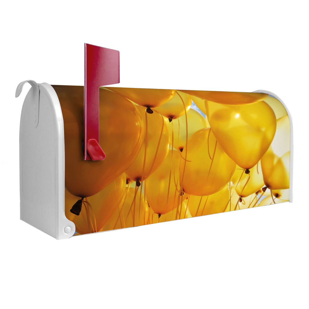 Unser amerikanischer Briefkasten mit dem Motiv Gelbe Luftballons hat ein sehr ansprechendes und ausgefallenes Design, ist in der Grundfarbe weiß, grün oder schwarz erhältlich. Damit entlocken Sie Ihren Nachbarn und dem Postboten immer wieder ein Lächeln. Die Mailbox ist ein Original Import aus Mississippi USA und wird von unserer kleinen Manufaktur in Sachsen von Hand veredelt. Die US-Mailbox bietet ausreichend Platz auch für große Sendungen, eine Fahne die Ihnen Post anzeigt, wetterfestes und äußerst stabiles Material - so macht Post empfangen Freude.