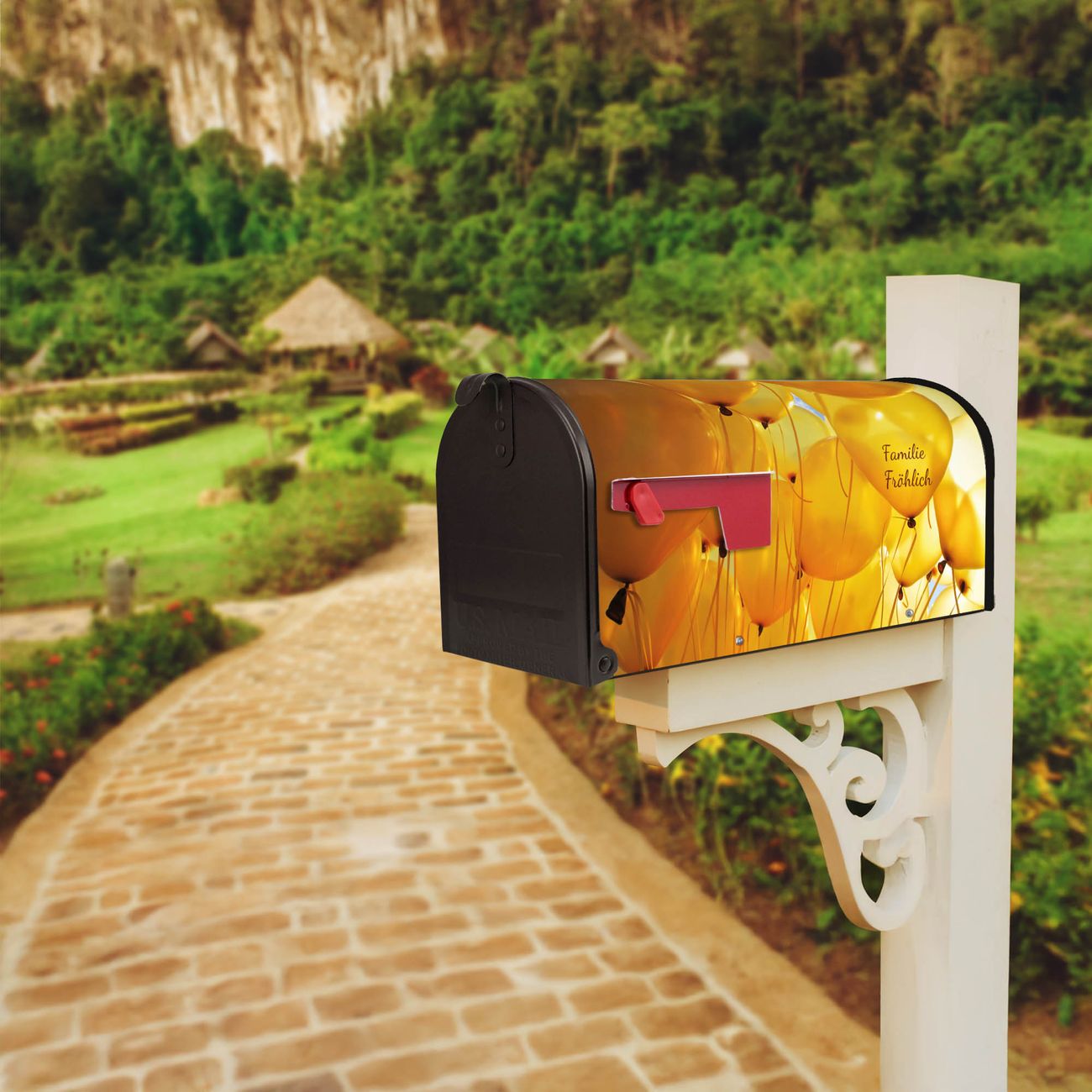 Amerikanischer Briefkasten Gelbe Luftballons