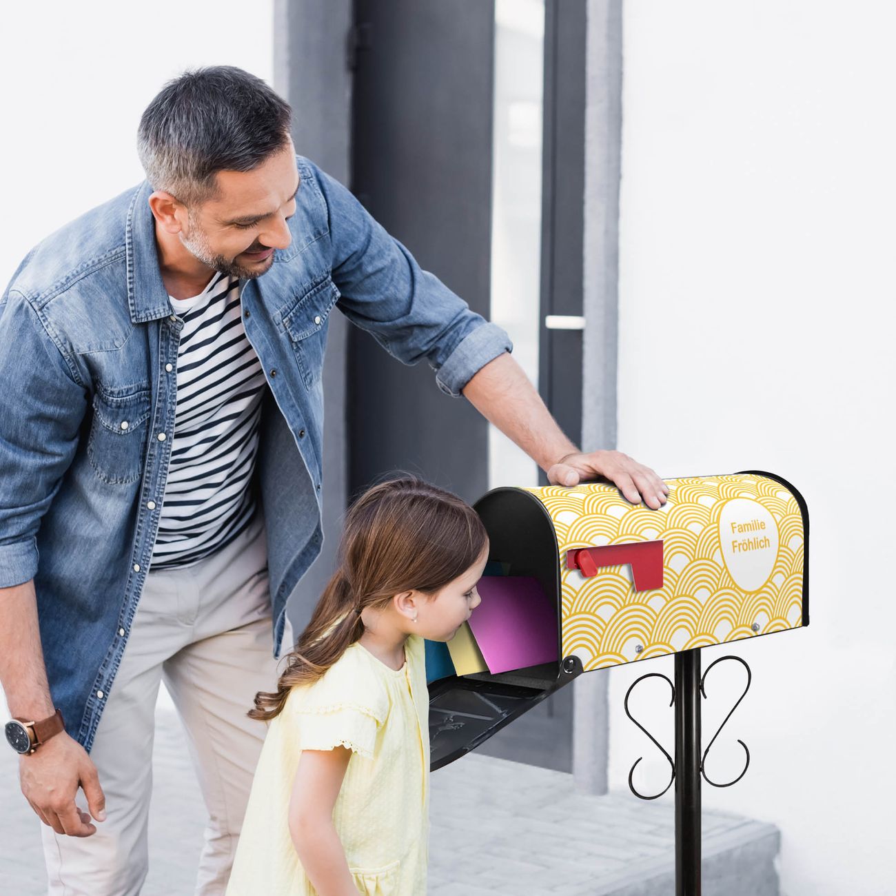 Unser amerikanischer Briefkasten mit dem Motiv Gelbe Wellen hat ein sehr ansprechendes und ausgefallenes Design, ist in der Grundfarbe weiß, grün oder schwarz erhältlich. Damit entlocken Sie Ihren Nachbarn und dem Postboten immer wieder ein Lächeln. Die Mailbox ist ein Original Import aus Mississippi USA und wird von unserer kleinen Manufaktur in Sachsen von Hand veredelt. Die US-Mailbox bietet ausreichend Platz auch für große Sendungen, eine Fahne die Ihnen Post anzeigt, wetterfestes und äußerst stabiles Material - so macht Post empfangen Freude.