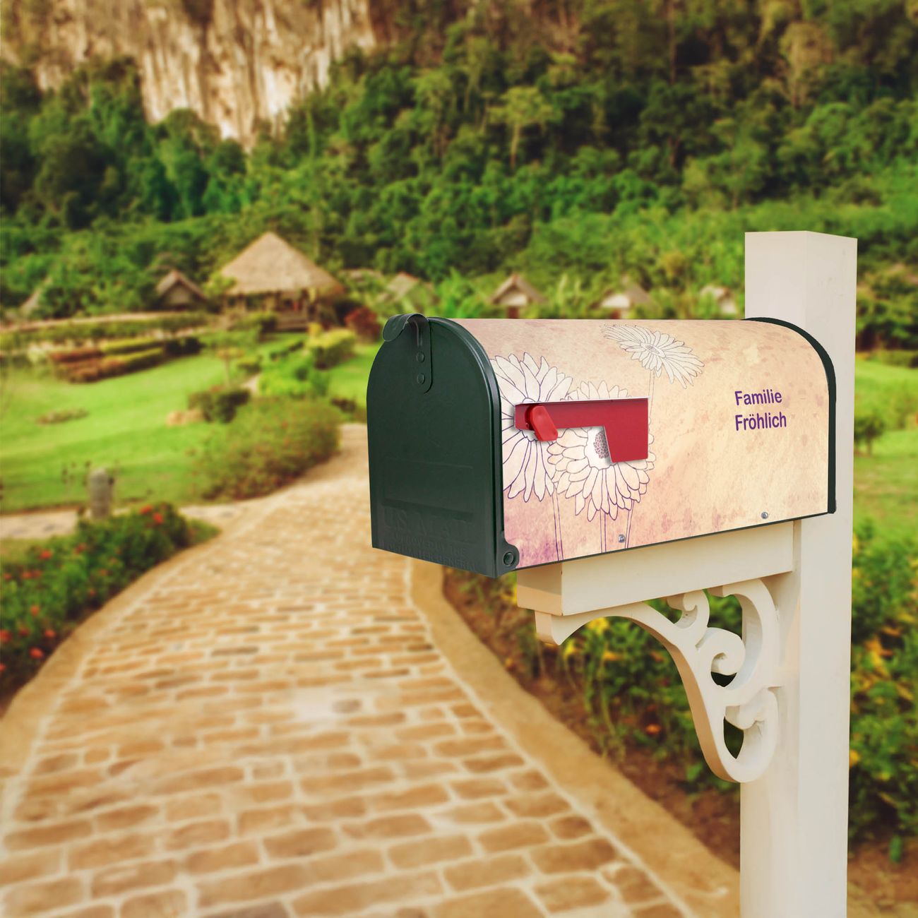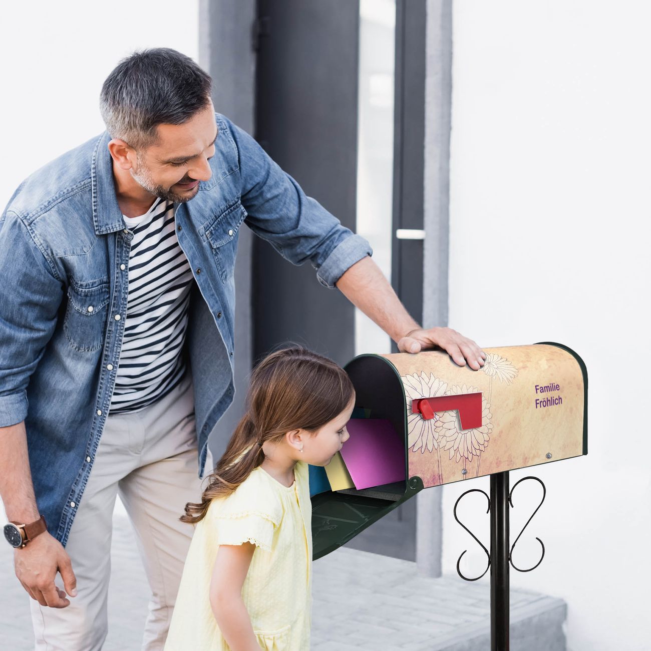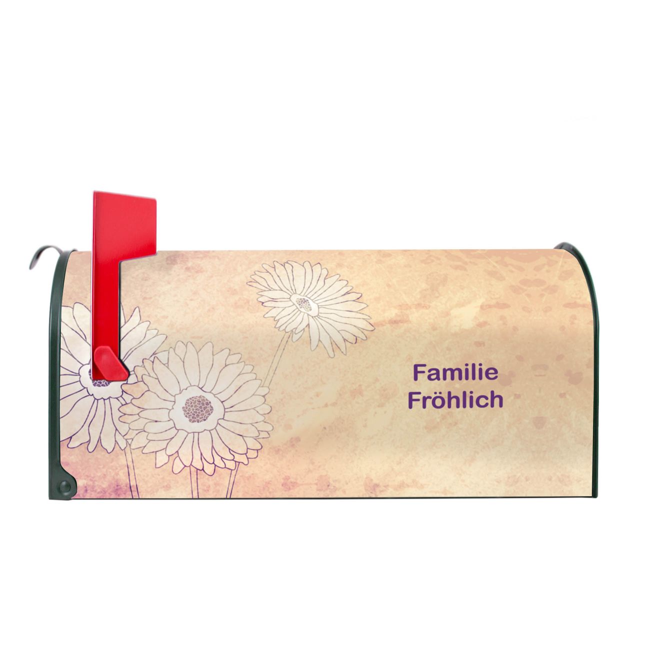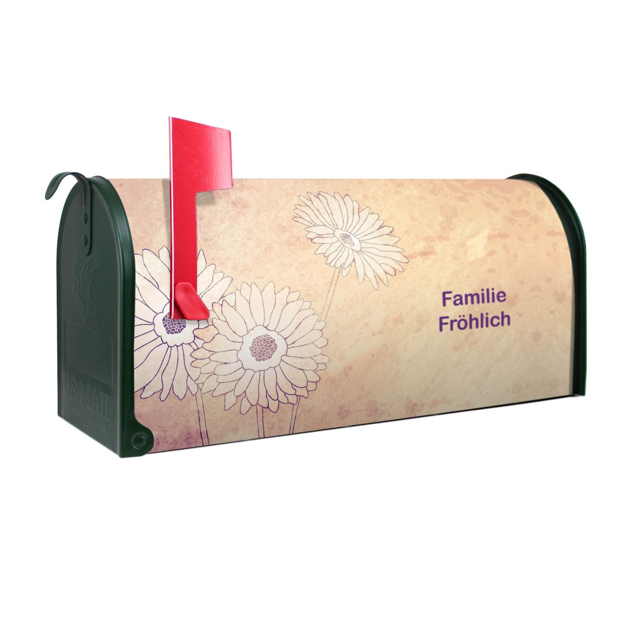 Unser amerikanischer Briefkasten mit dem Motiv WT Gerbera hat ein sehr ansprechendes und ausgefallenes Design, ist in der Grundfarbe weiß, grün oder schwarz erhältlich. Damit entlocken Sie Ihren Nachbarn und dem Postboten immer wieder ein Lächeln. Die Mailbox ist ein Original Import aus Mississippi USA und wird von unserer kleinen Manufaktur in Sachsen von Hand veredelt. Die US-Mailbox bietet ausreichend Platz auch für große Sendungen, eine Fahne die Ihnen Post anzeigt, wetterfestes und äußerst stabiles Material - so macht Post empfangen Freude.