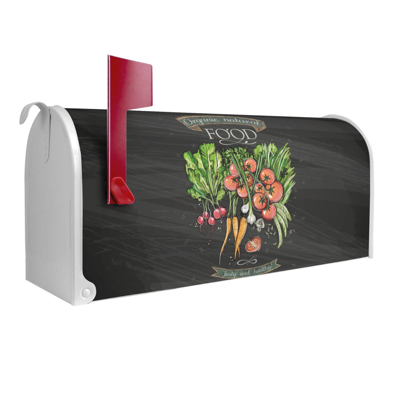 Der amerikanische Briefkasten von banjado mit Gesund Und Lecker Motiv bietet Ihnen ausreichend Fassungsvermögen, um große A4 Sendungen und Zeitschriften zu empfangen. Die typisch amerikanische rote Fahne zeigt Ihnen an, wenn Sie Post erhalten haben. Die US-Mailbox besteht aus verzinktem Stahlblech welches lackiert wurde und ist 48 x 22 x 16 CM (BxHxT) groß. Die Folie mit Motiv Gesund Und Lecker besteht aus einer wetter- und UV-resistenten Folie, die mit einem Schutzlaminat überzogen ist, sodass die US Mailbox zusätzlich vor Kratzern geschützt ist. An der Unterkante sind 4 Löcher je Seite um die Mailbox, typisch amerikanisch, an einem Holzpfahl oder einem Zaun zu befestigen. Auf Wunsch können Sie bei uns den passenden Standfuß oder die passende Wandhalterung kaufen um die US-Mailbox sicher zu befestigen. Wir bieten Ihnen ebenfalls Namensschilder, bereits beschriftet oder frei zu beschriften, und verschiedene selbst gestaltete Bitte-Keine-Werbung-Aufkleber.