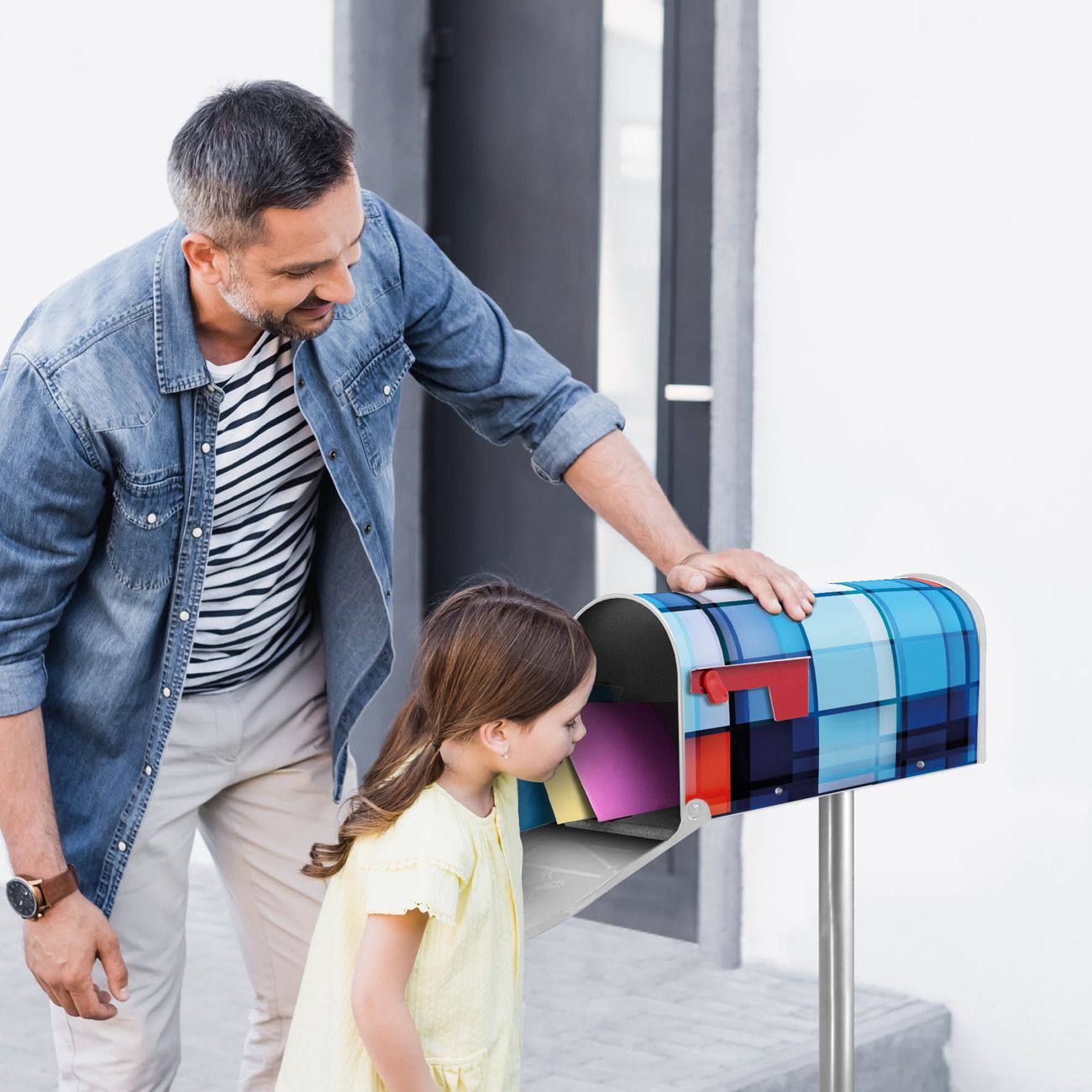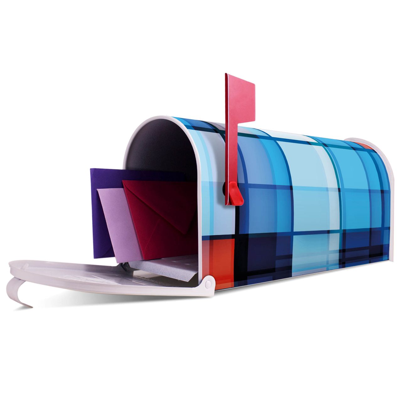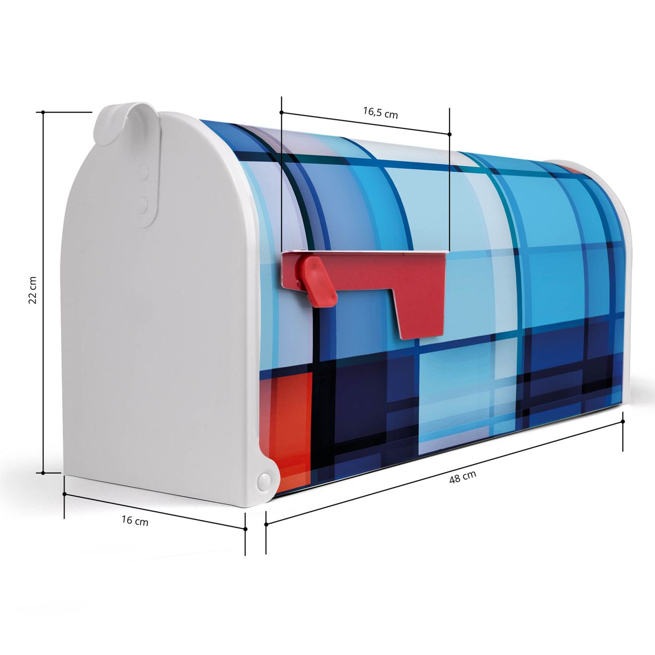 Der amerikanische Briefkasten von banjado mit Gläserne Stadt Motiv bietet Ihnen ausreichend Fassungsvermögen, um große A4 Sendungen und Zeitschriften zu empfangen. Die typisch amerikanische rote Fahne zeigt Ihnen an, wenn Sie Post erhalten haben. Die US-Mailbox besteht aus verzinktem Stahlblech welches lackiert wurde und ist 48 x 22 x 16 CM (BxHxT) groß. Die Folie mit Motiv Gläserne Stadt besteht aus einer wetter- und UV-resistenten Folie, die mit einem Schutzlaminat überzogen ist, sodass die US Mailbox zusätzlich vor Kratzern geschützt ist. An der Unterkante sind 4 Löcher je Seite um die Mailbox, typisch amerikanisch, an einem Holzpfahl oder einem Zaun zu befestigen. Auf Wunsch können Sie bei uns den passenden Standfuß oder die passende Wandhalterung kaufen um die US-Mailbox sicher zu befestigen. Wir bieten Ihnen ebenfalls Namensschilder, bereits beschriftet oder frei zu beschriften, und verschiedene selbst gestaltete Bitte-Keine-Werbung-Aufkleber.