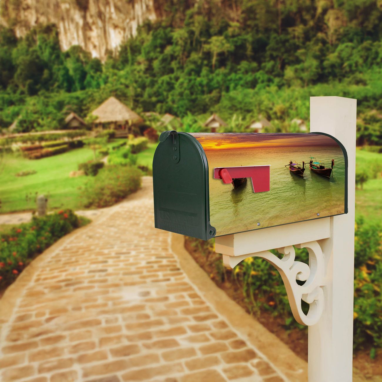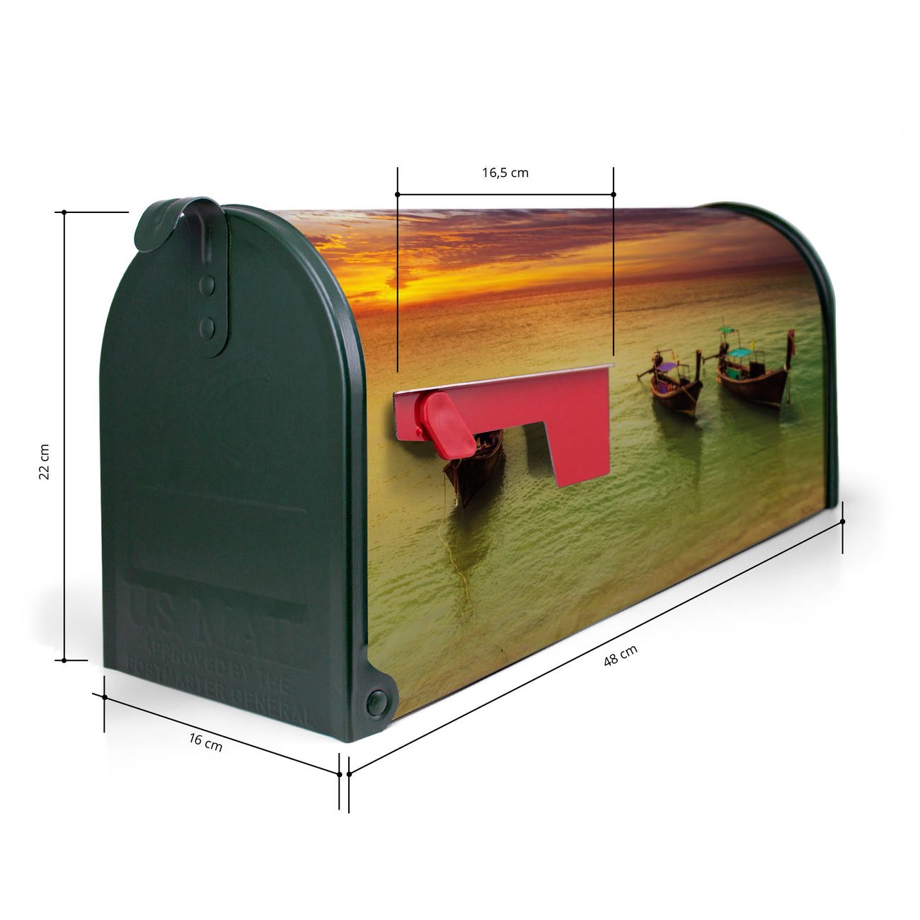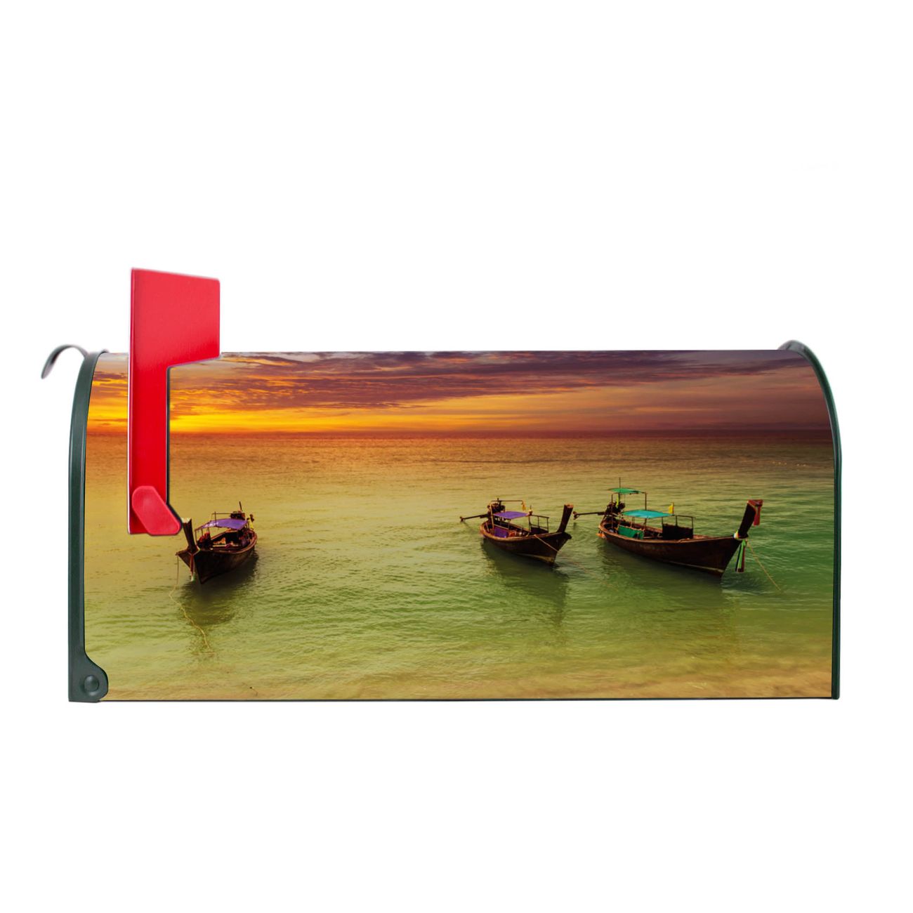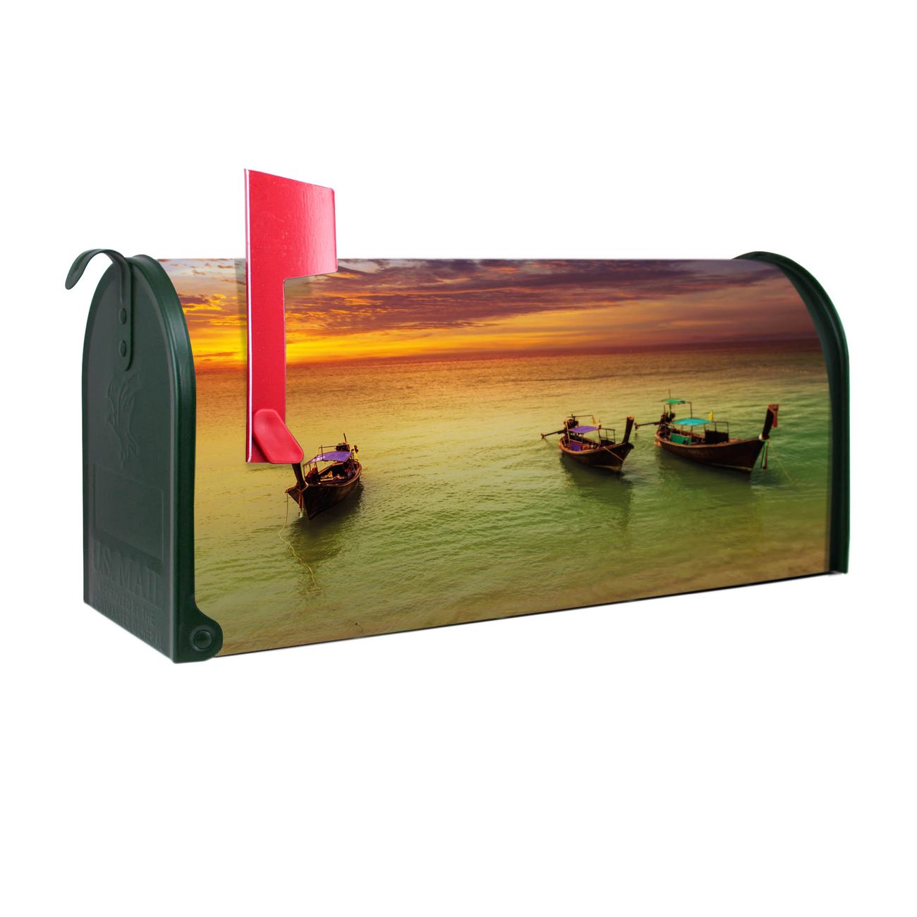Unser amerikanischer Briefkasten mit dem Motiv Golf Von Thailand hat ein sehr ansprechendes und ausgefallenes Design, ist in der Grundfarbe weiß, grün oder schwarz erhältlich. Damit entlocken Sie Ihren Nachbarn und dem Postboten immer wieder ein Lächeln. Die Mailbox ist ein Original Import aus Mississippi USA und wird von unserer kleinen Manufaktur in Sachsen von Hand veredelt. Die US-Mailbox bietet ausreichend Platz auch für große Sendungen, eine Fahne die Ihnen Post anzeigt, wetterfestes und äußerst stabiles Material - so macht Post empfangen Freude.