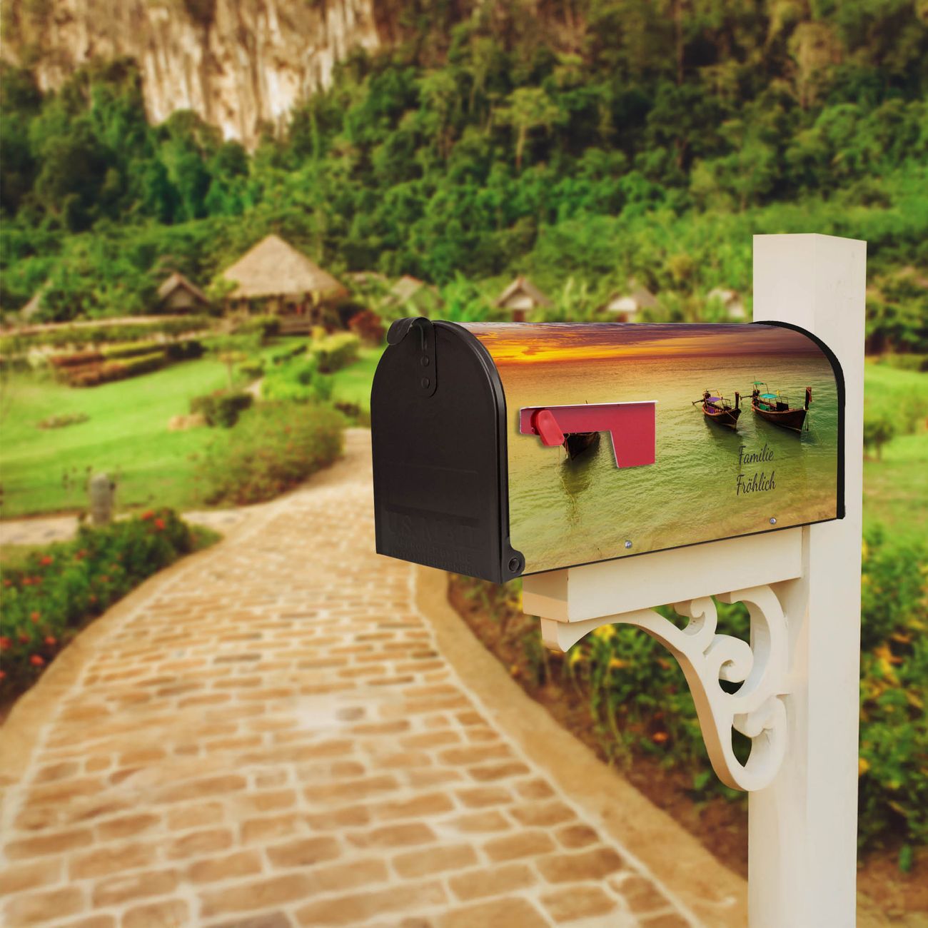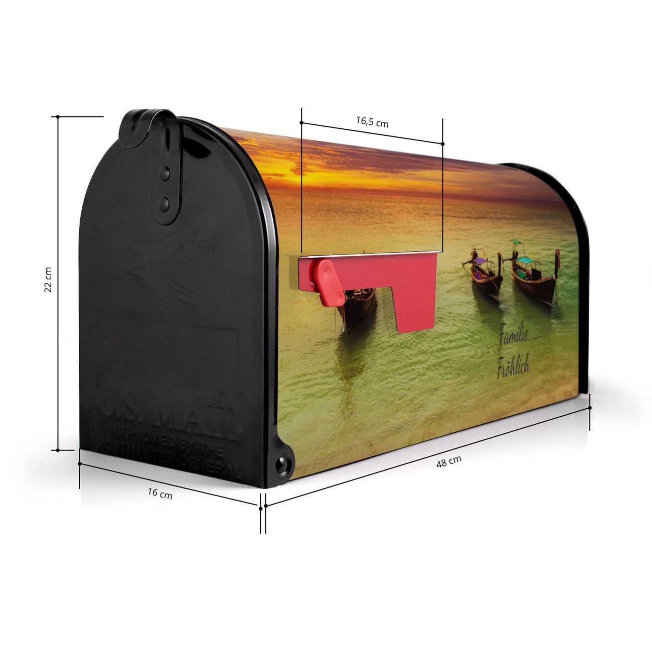 Der amerikanische Briefkasten von banjado mit Golf Von Thailand Motiv bietet Ihnen ausreichend Fassungsvermögen, um große A4 Sendungen und Zeitschriften zu empfangen. Die typisch amerikanische rote Fahne zeigt Ihnen an, wenn Sie Post erhalten haben. Die US-Mailbox besteht aus verzinktem Stahlblech welches lackiert wurde und ist 48 x 22 x 16 CM (BxHxT) groß. Die Folie mit Motiv Golf Von Thailand besteht aus einer wetter- und UV-resistenten Folie, die mit einem Schutzlaminat überzogen ist, sodass die US Mailbox zusätzlich vor Kratzern geschützt ist. An der Unterkante sind 4 Löcher je Seite um die Mailbox, typisch amerikanisch, an einem Holzpfahl oder einem Zaun zu befestigen. Auf Wunsch können Sie bei uns den passenden Standfuß oder die passende Wandhalterung kaufen um die US-Mailbox sicher zu befestigen. Wir bieten Ihnen ebenfalls Namensschilder, bereits beschriftet oder frei zu beschriften, und verschiedene selbst gestaltete Bitte-Keine-Werbung-Aufkleber.