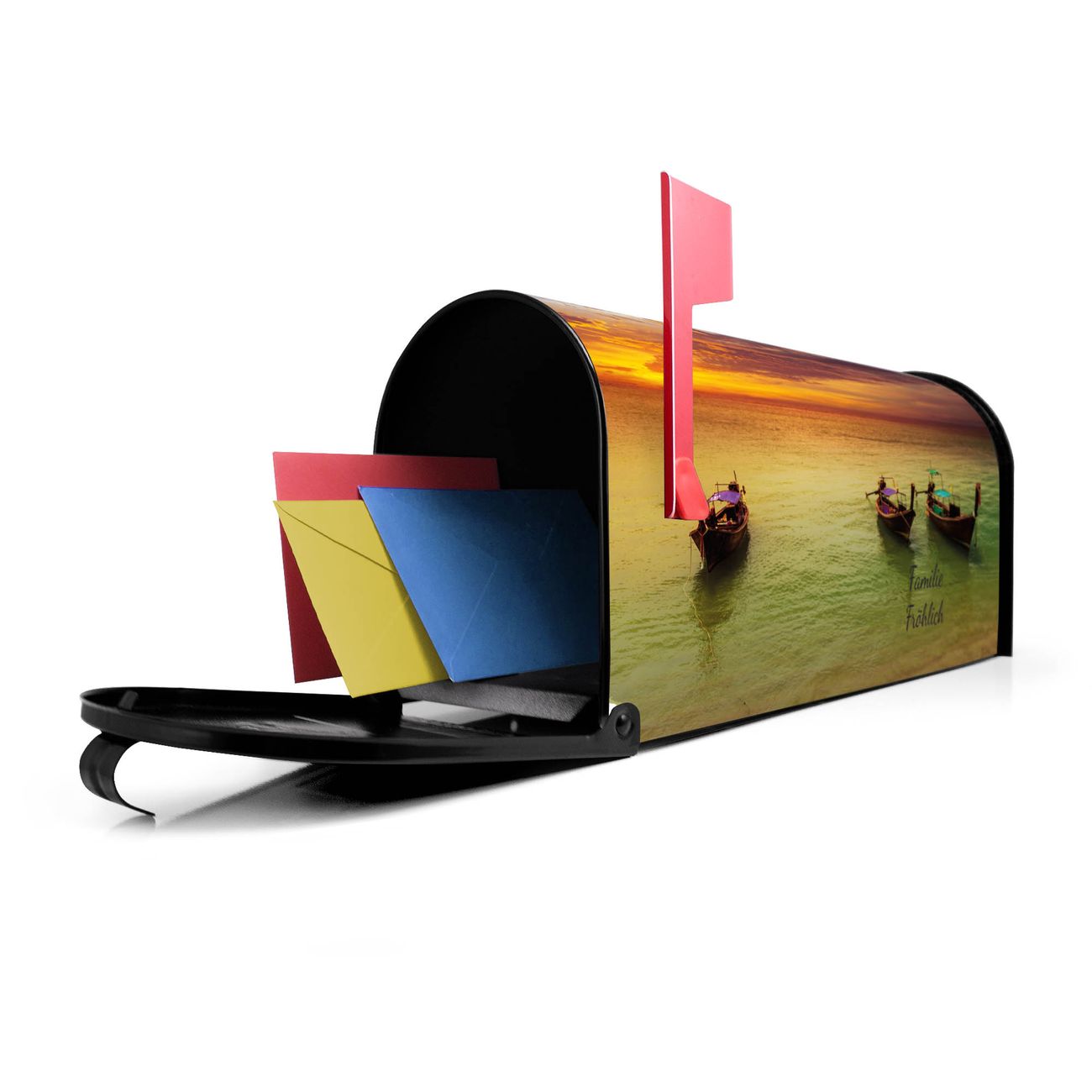 Unser amerikanischer Briefkasten mit dem Motiv Golf Von Thailand hat ein sehr ansprechendes und ausgefallenes Design, ist in der Grundfarbe weiß, grün oder schwarz erhältlich. Damit entlocken Sie Ihren Nachbarn und dem Postboten immer wieder ein Lächeln. Die Mailbox ist ein Original Import aus Mississippi USA und wird von unserer kleinen Manufaktur in Sachsen von Hand veredelt. Die US-Mailbox bietet ausreichend Platz auch für große Sendungen, eine Fahne die Ihnen Post anzeigt, wetterfestes und äußerst stabiles Material - so macht Post empfangen Freude.