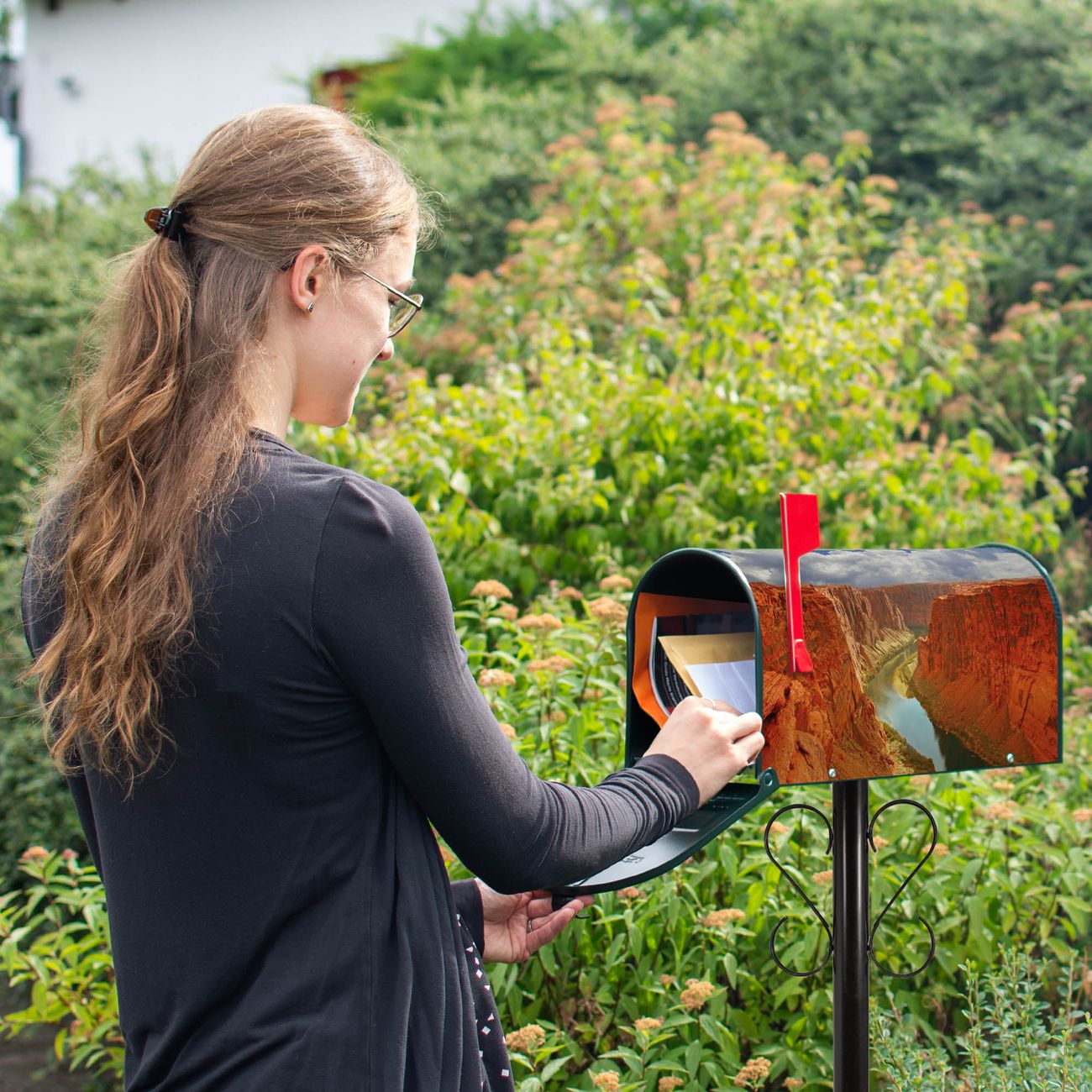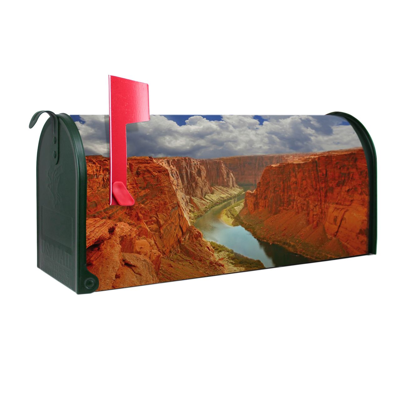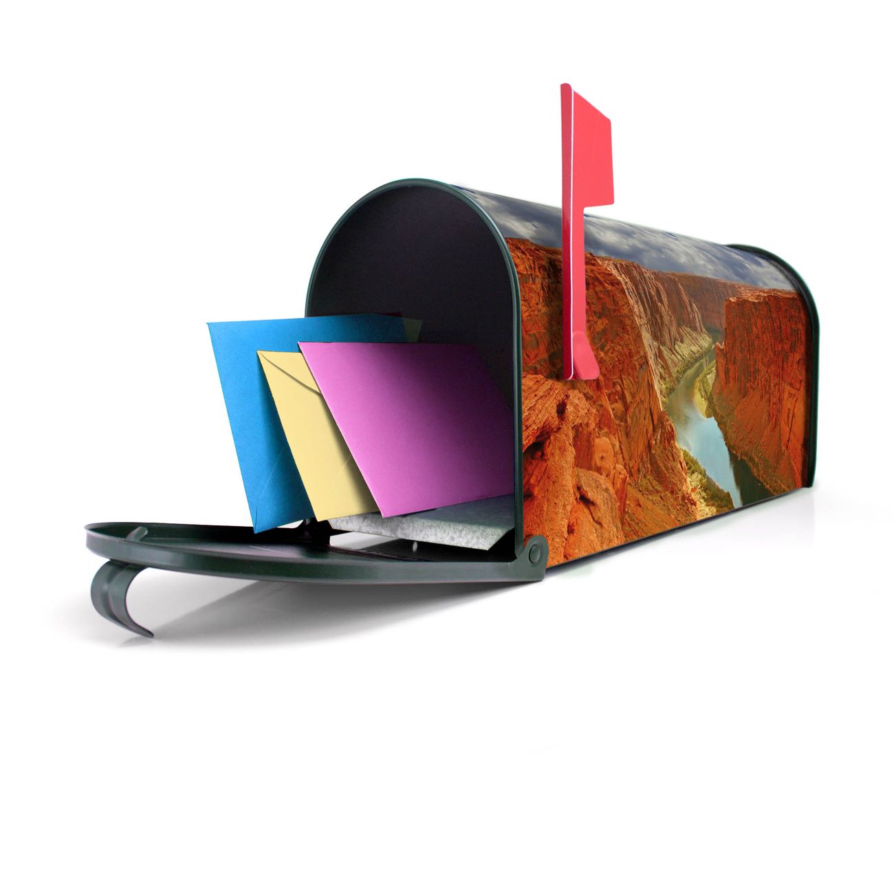 Unser amerikanischer Briefkasten mit dem Motiv Grand Canyon hat ein sehr ansprechendes und ausgefallenes Design, ist in der Grundfarbe weiß, grün oder schwarz erhältlich. Damit entlocken Sie Ihren Nachbarn und dem Postboten immer wieder ein Lächeln. Die Mailbox ist ein Original Import aus Mississippi USA und wird von unserer kleinen Manufaktur in Sachsen von Hand veredelt. Die US-Mailbox bietet ausreichend Platz auch für große Sendungen, eine Fahne die Ihnen Post anzeigt, wetterfestes und äußerst stabiles Material - so macht Post empfangen Freude.