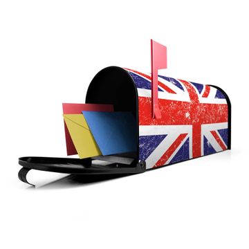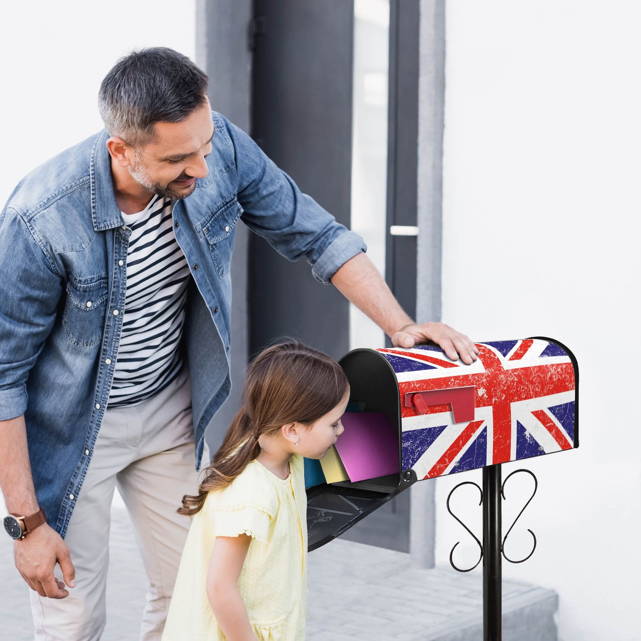 Der amerikanische Briefkasten von banjado mit Great Britain Motiv bietet Ihnen ausreichend Fassungsvermögen, um große A4 Sendungen und Zeitschriften zu empfangen. Die typisch amerikanische rote Fahne zeigt Ihnen an, wenn Sie Post erhalten haben. Die US-Mailbox besteht aus verzinktem Stahlblech welches lackiert wurde und ist 48 x 22 x 16 CM (BxHxT) groß. Die Folie mit Motiv Great Britain besteht aus einer wetter- und UV-resistenten Folie, die mit einem Schutzlaminat überzogen ist, sodass die US Mailbox zusätzlich vor Kratzern geschützt ist. An der Unterkante sind 4 Löcher je Seite um die Mailbox, typisch amerikanisch, an einem Holzpfahl oder einem Zaun zu befestigen. Auf Wunsch können Sie bei uns den passenden Standfuß oder die passende Wandhalterung kaufen um die US-Mailbox sicher zu befestigen. Wir bieten Ihnen ebenfalls Namensschilder, bereits beschriftet oder frei zu beschriften, und verschiedene selbst gestaltete Bitte-Keine-Werbung-Aufkleber.