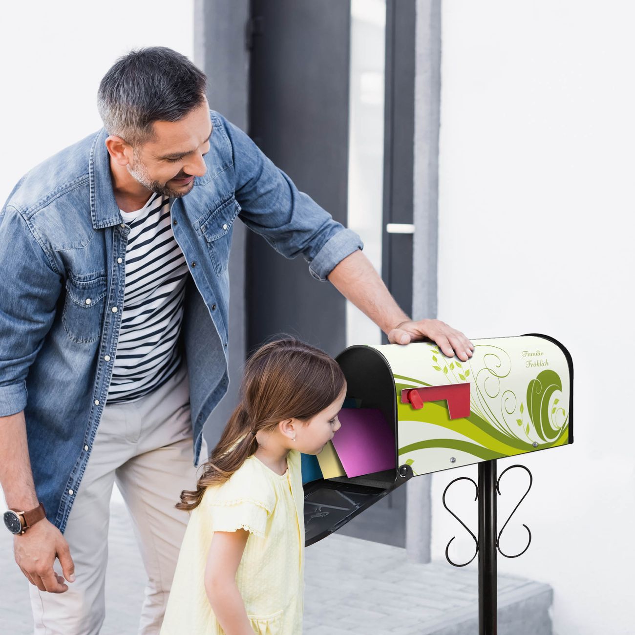 Unser amerikanischer Briefkasten mit dem Motiv Green Swirl hat ein sehr ansprechendes und ausgefallenes Design, ist in der Grundfarbe weiß, grün oder schwarz erhältlich. Damit entlocken Sie Ihren Nachbarn und dem Postboten immer wieder ein Lächeln. Die Mailbox ist ein Original Import aus Mississippi USA und wird von unserer kleinen Manufaktur in Sachsen von Hand veredelt. Die US-Mailbox bietet ausreichend Platz auch für große Sendungen, eine Fahne die Ihnen Post anzeigt, wetterfestes und äußerst stabiles Material - so macht Post empfangen Freude.
