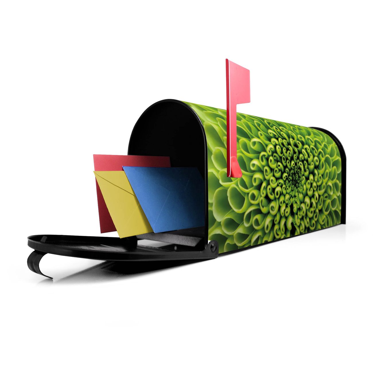 Unser amerikanischer Briefkasten mit dem Motiv Grüne Chrysantheme hat ein sehr ansprechendes und ausgefallenes Design, ist in der Grundfarbe weiß, grün oder schwarz erhältlich. Damit entlocken Sie Ihren Nachbarn und dem Postboten immer wieder ein Lächeln. Die Mailbox ist ein Original Import aus Mississippi USA und wird von unserer kleinen Manufaktur in Sachsen von Hand veredelt. Die US-Mailbox bietet ausreichend Platz auch für große Sendungen, eine Fahne die Ihnen Post anzeigt, wetterfestes und äußerst stabiles Material - so macht Post empfangen Freude.