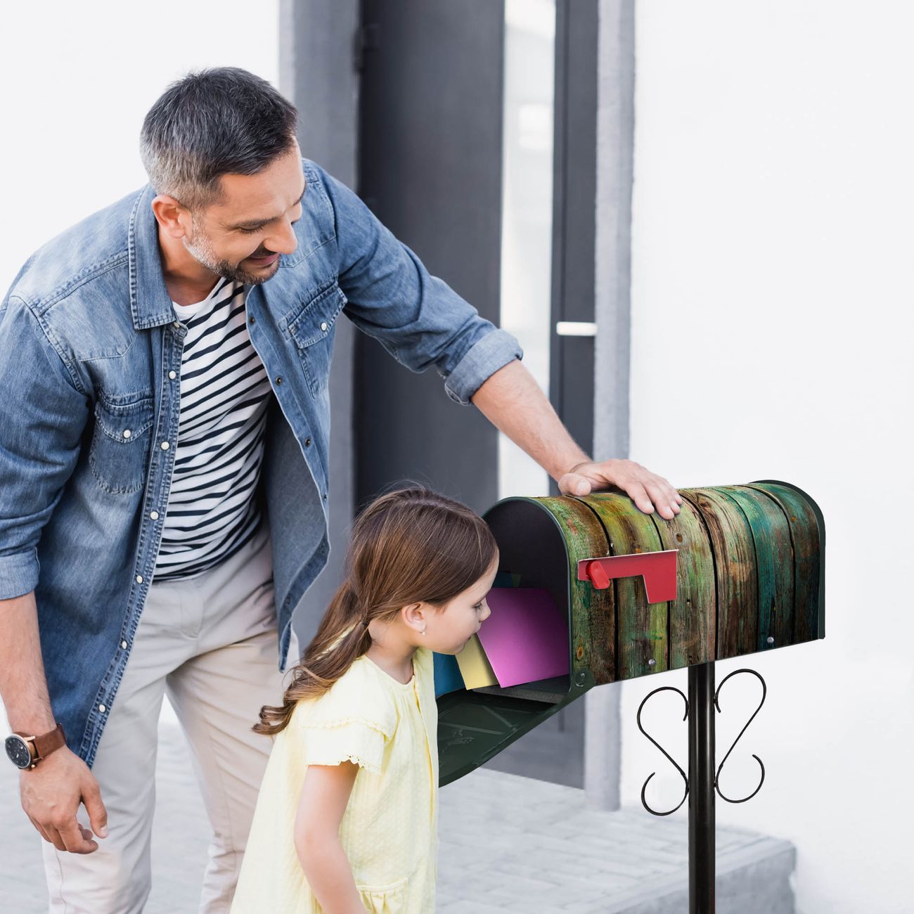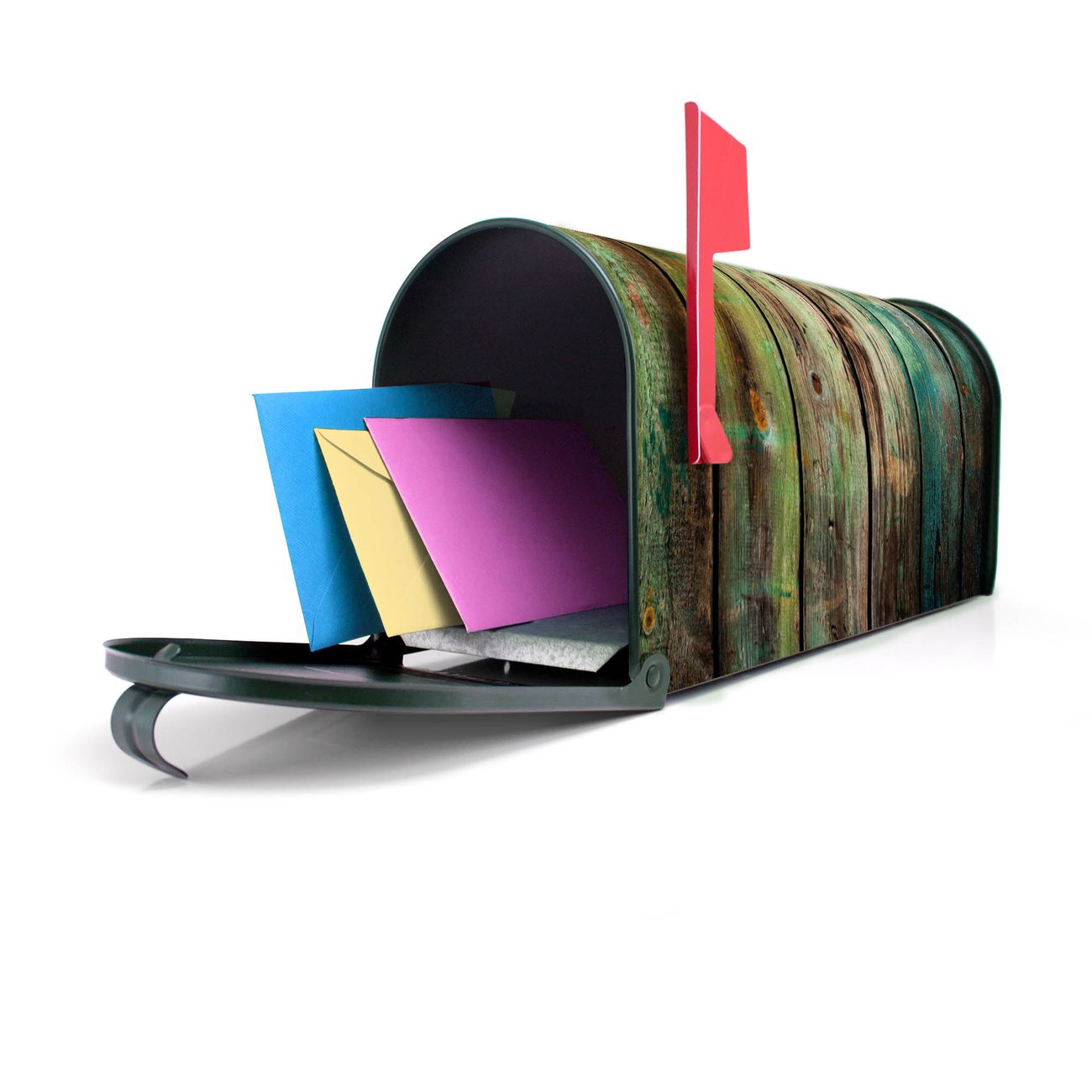 Unser amerikanischer Briefkasten mit dem Motiv Grünes Holz hat ein sehr ansprechendes und ausgefallenes Design, ist in der Grundfarbe weiß, grün oder schwarz erhältlich. Damit entlocken Sie Ihren Nachbarn und dem Postboten immer wieder ein Lächeln. Die Mailbox ist ein Original Import aus Mississippi USA und wird von unserer kleinen Manufaktur in Sachsen von Hand veredelt. Die US-Mailbox bietet ausreichend Platz auch für große Sendungen, eine Fahne die Ihnen Post anzeigt, wetterfestes und äußerst stabiles Material - so macht Post empfangen Freude.