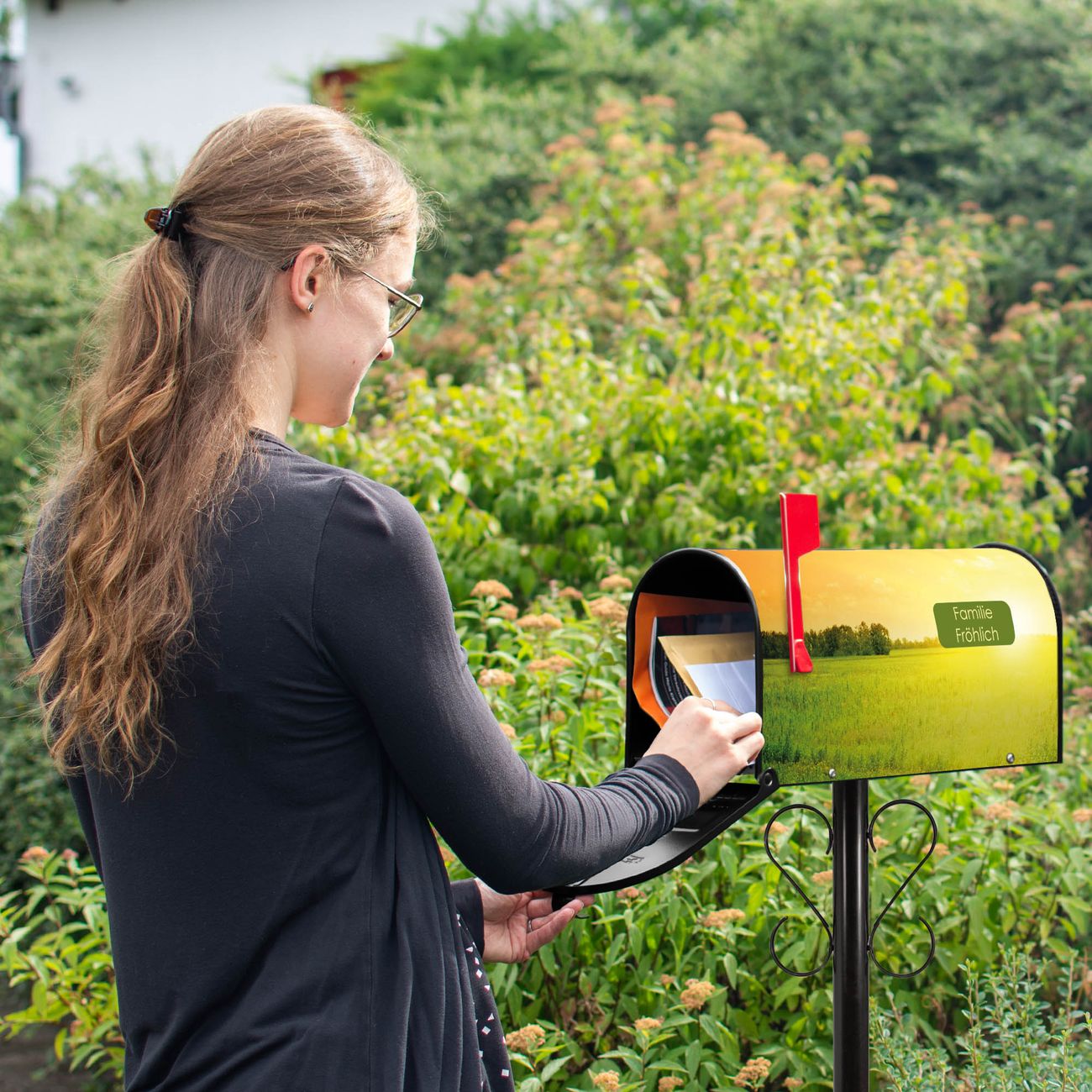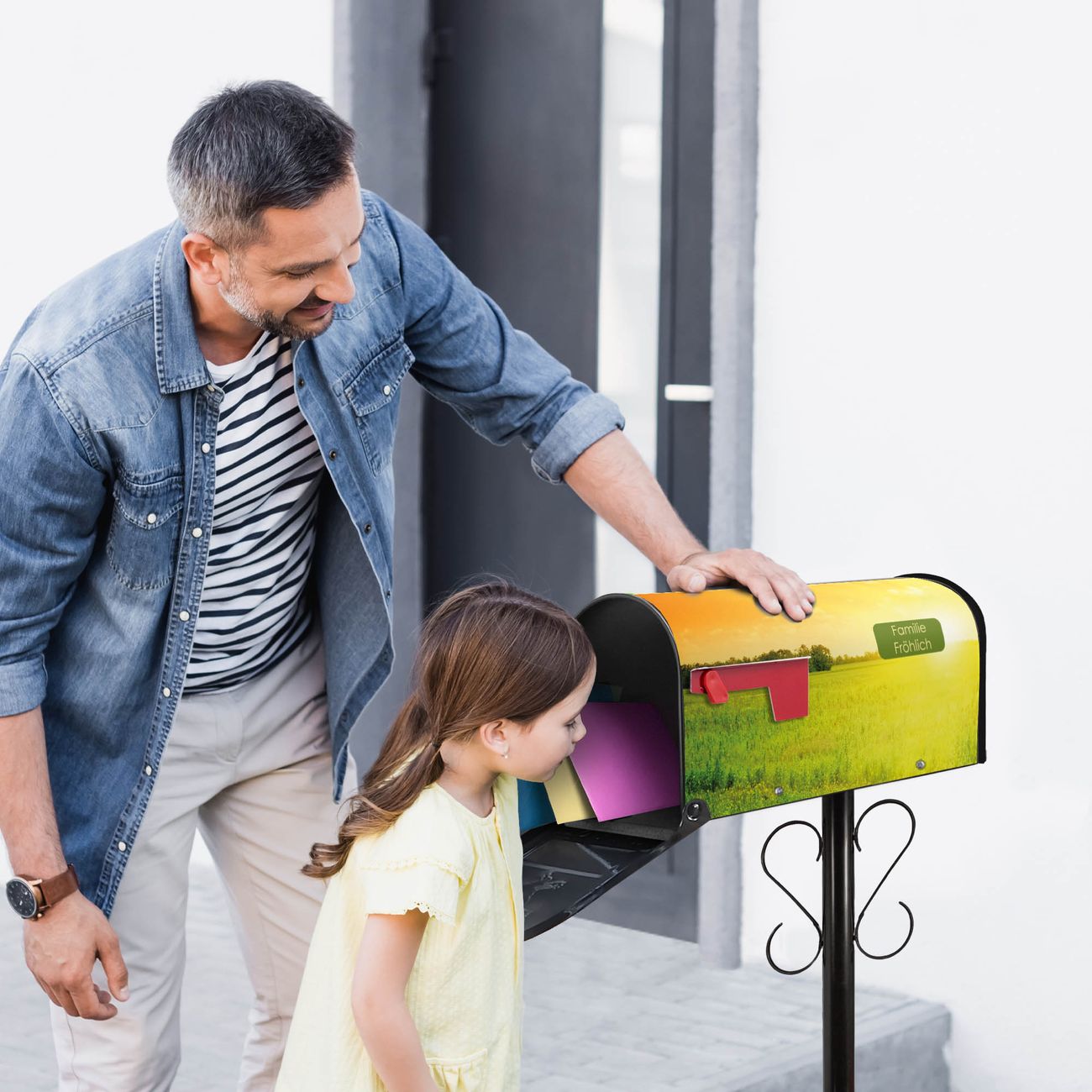Unser amerikanischer Briefkasten mit dem Motiv Guten Morgen 2 hat ein sehr ansprechendes und ausgefallenes Design, ist in der Grundfarbe weiß, grün oder schwarz erhältlich. Damit entlocken Sie Ihren Nachbarn und dem Postboten immer wieder ein Lächeln. Die Mailbox ist ein Original Import aus Mississippi USA und wird von unserer kleinen Manufaktur in Sachsen von Hand veredelt. Die US-Mailbox bietet ausreichend Platz auch für große Sendungen, eine Fahne die Ihnen Post anzeigt, wetterfestes und äußerst stabiles Material - so macht Post empfangen Freude.