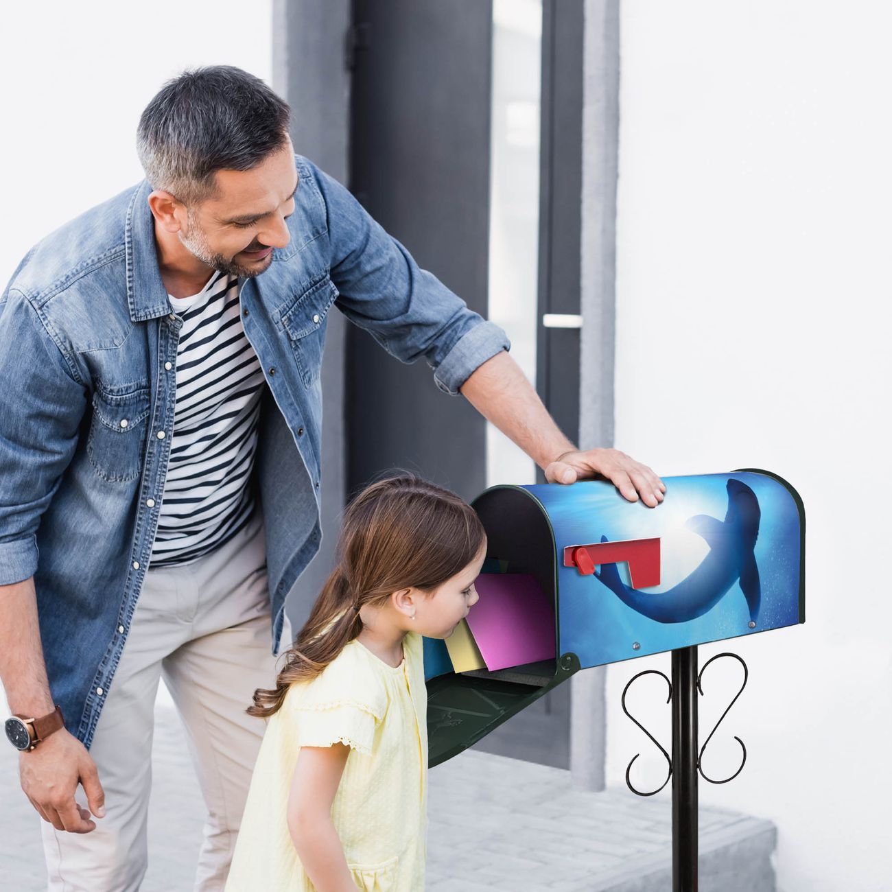 Unser amerikanischer Briefkasten mit dem Motiv Hai hat ein sehr ansprechendes und ausgefallenes Design, ist in der Grundfarbe weiß, grün oder schwarz erhältlich. Damit entlocken Sie Ihren Nachbarn und dem Postboten immer wieder ein Lächeln. Die Mailbox ist ein Original Import aus Mississippi USA und wird von unserer kleinen Manufaktur in Sachsen von Hand veredelt. Die US-Mailbox bietet ausreichend Platz auch für große Sendungen, eine Fahne die Ihnen Post anzeigt, wetterfestes und äußerst stabiles Material - so macht Post empfangen Freude.