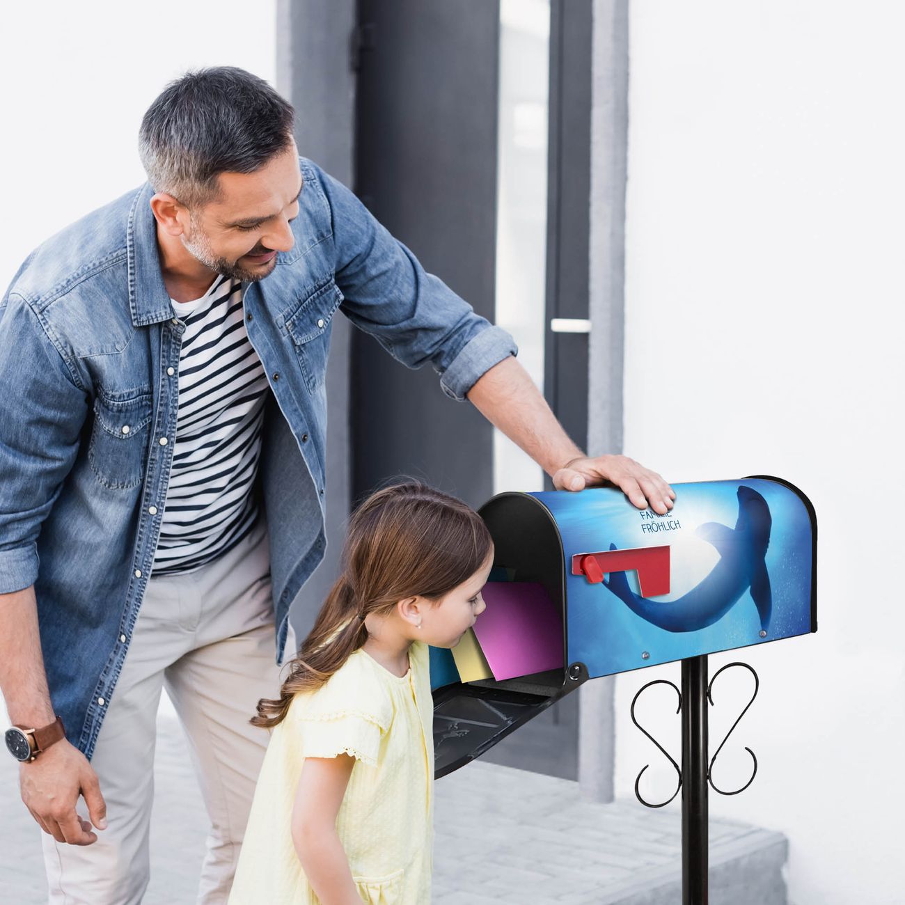 Unser amerikanischer Briefkasten mit dem Motiv Hai hat ein sehr ansprechendes und ausgefallenes Design, ist in der Grundfarbe weiß, grün oder schwarz erhältlich. Damit entlocken Sie Ihren Nachbarn und dem Postboten immer wieder ein Lächeln. Die Mailbox ist ein Original Import aus Mississippi USA und wird von unserer kleinen Manufaktur in Sachsen von Hand veredelt. Die US-Mailbox bietet ausreichend Platz auch für große Sendungen, eine Fahne die Ihnen Post anzeigt, wetterfestes und äußerst stabiles Material - so macht Post empfangen Freude.