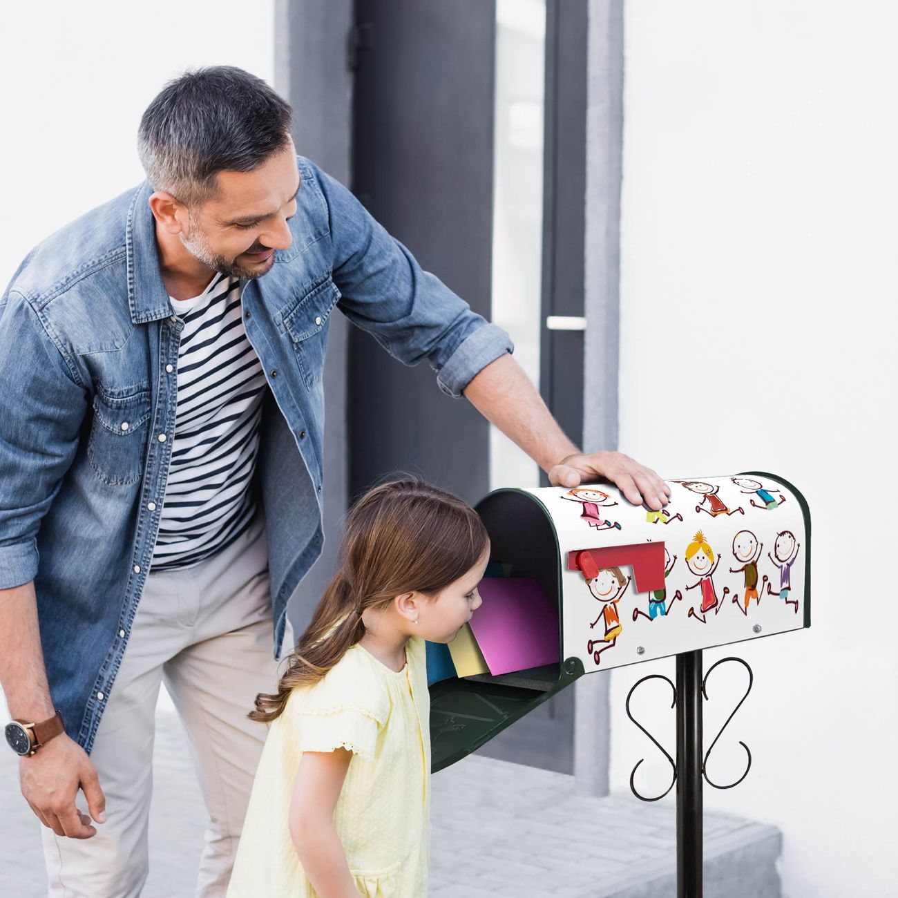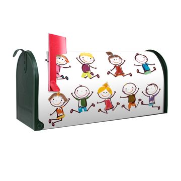 Unser amerikanischer Briefkasten mit dem Motiv Happy Kids hat ein sehr ansprechendes und ausgefallenes Design, ist in der Grundfarbe weiß, grün oder schwarz erhältlich. Damit entlocken Sie Ihren Nachbarn und dem Postboten immer wieder ein Lächeln. Die Mailbox ist ein Original Import aus Mississippi USA und wird von unserer kleinen Manufaktur in Sachsen von Hand veredelt. Die US-Mailbox bietet ausreichend Platz auch für große Sendungen, eine Fahne die Ihnen Post anzeigt, wetterfestes und äußerst stabiles Material - so macht Post empfangen Freude.
