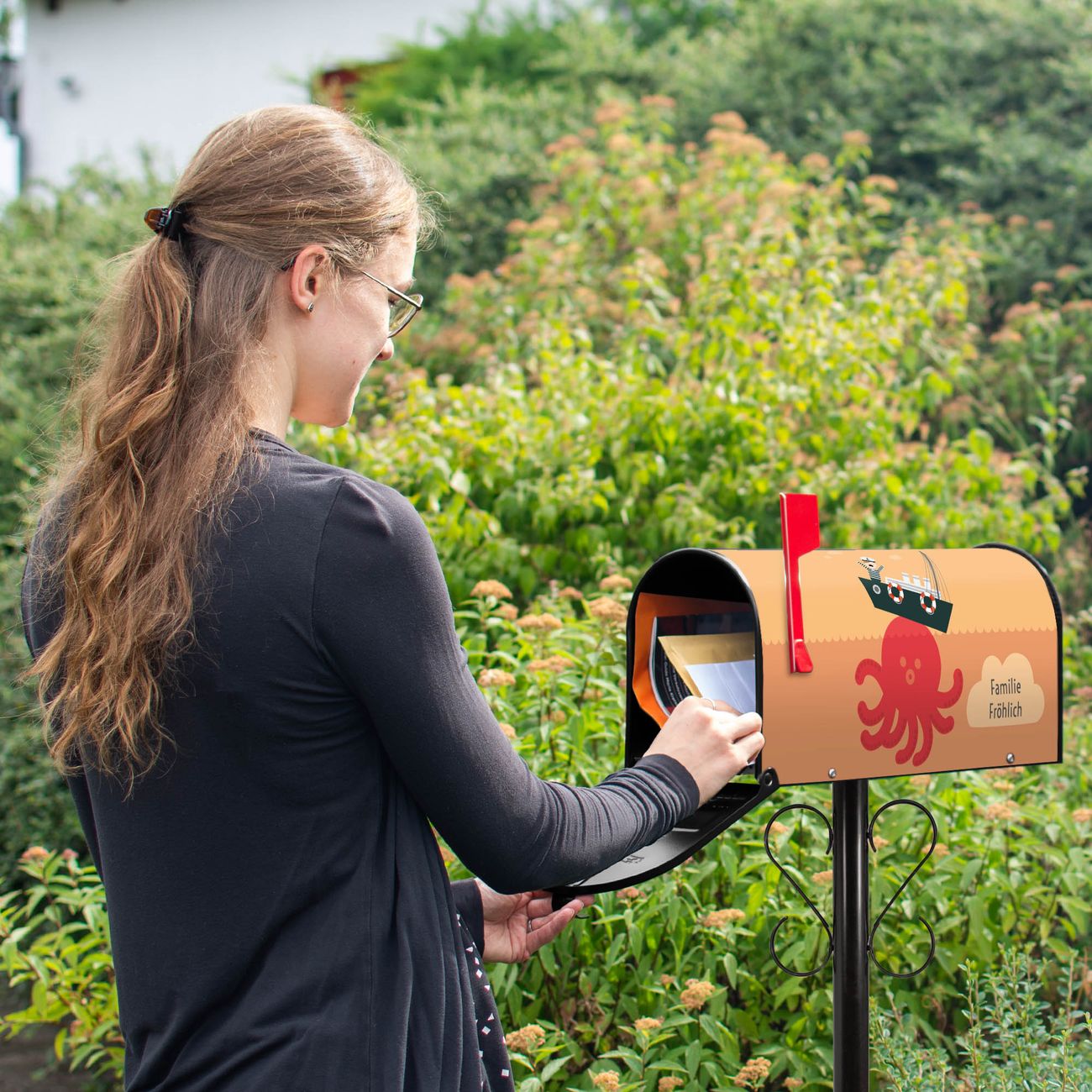 Der amerikanische Briefkasten von banjado mit Havarie Motiv bietet Ihnen ausreichend Fassungsvermögen, um große A4 Sendungen und Zeitschriften zu empfangen. Die typisch amerikanische rote Fahne zeigt Ihnen an, wenn Sie Post erhalten haben. Die US-Mailbox besteht aus verzinktem Stahlblech welches lackiert wurde und ist 48 x 22 x 16 CM (BxHxT) groß. Die Folie mit Motiv Havarie besteht aus einer wetter- und UV-resistenten Folie, die mit einem Schutzlaminat überzogen ist, sodass die US Mailbox zusätzlich vor Kratzern geschützt ist. An der Unterkante sind 4 Löcher je Seite um die Mailbox, typisch amerikanisch, an einem Holzpfahl oder einem Zaun zu befestigen. Auf Wunsch können Sie bei uns den passenden Standfuß oder die passende Wandhalterung kaufen um die US-Mailbox sicher zu befestigen. Wir bieten Ihnen ebenfalls Namensschilder, bereits beschriftet oder frei zu beschriften, und verschiedene selbst gestaltete Bitte-Keine-Werbung-Aufkleber.