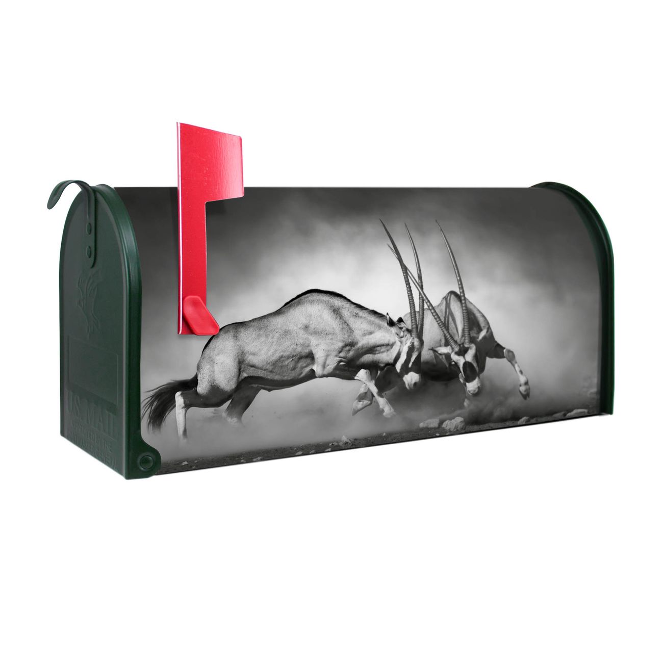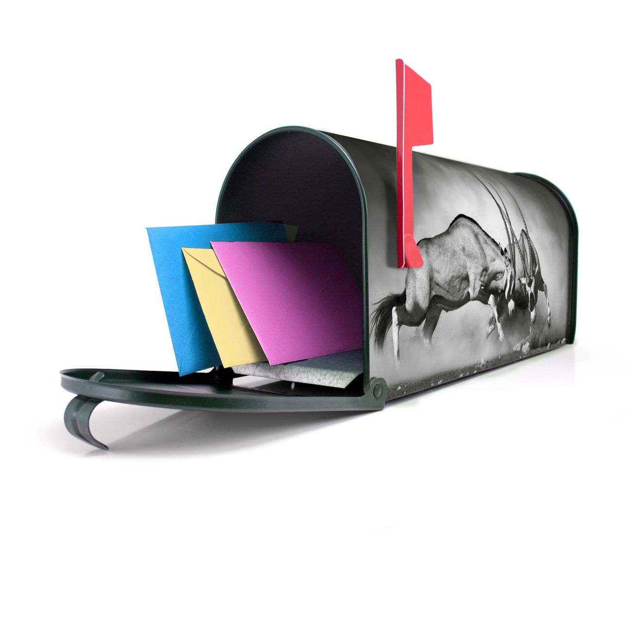Der amerikanische Briefkasten von banjado mit Head Crash Motiv bietet Ihnen ausreichend Fassungsvermögen, um große A4 Sendungen und Zeitschriften zu empfangen. Die typisch amerikanische rote Fahne zeigt Ihnen an, wenn Sie Post erhalten haben. Die US-Mailbox besteht aus verzinktem Stahlblech welches lackiert wurde und ist 48 x 22 x 16 CM (BxHxT) groß. Die Folie mit Motiv Head Crash besteht aus einer wetter- und UV-resistenten Folie, die mit einem Schutzlaminat überzogen ist, sodass die US Mailbox zusätzlich vor Kratzern geschützt ist. An der Unterkante sind 4 Löcher je Seite um die Mailbox, typisch amerikanisch, an einem Holzpfahl oder einem Zaun zu befestigen. Auf Wunsch können Sie bei uns den passenden Standfuß oder die passende Wandhalterung kaufen um die US-Mailbox sicher zu befestigen. Wir bieten Ihnen ebenfalls Namensschilder, bereits beschriftet oder frei zu beschriften, und verschiedene selbst gestaltete Bitte-Keine-Werbung-Aufkleber.