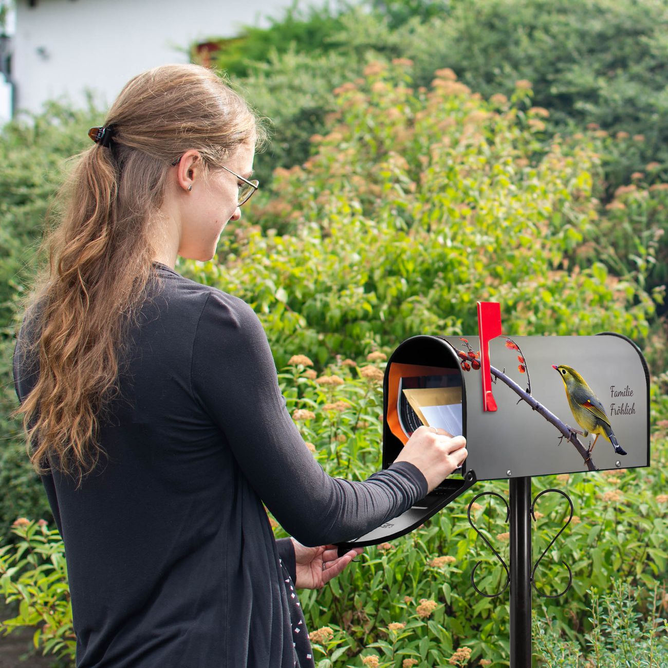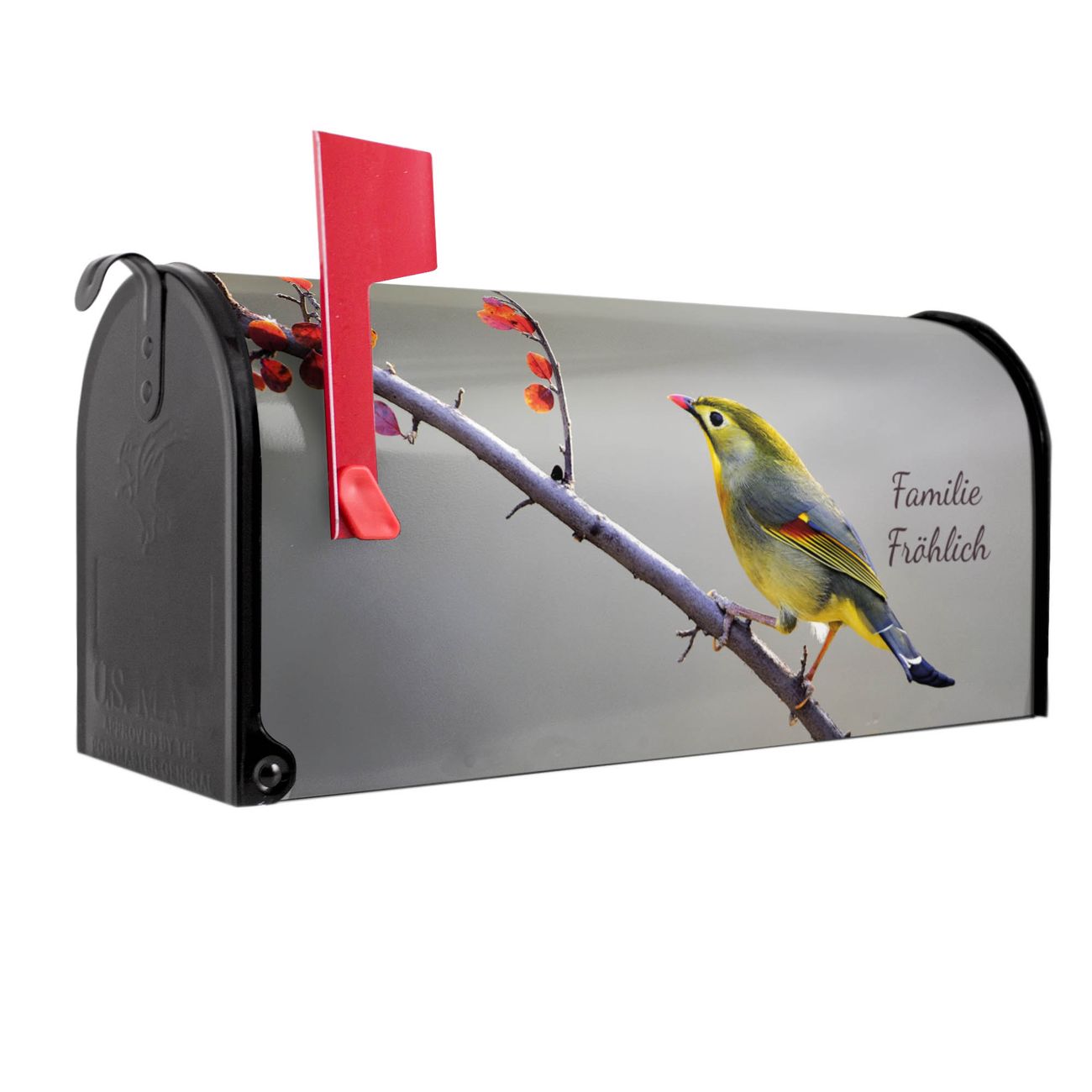 Unser amerikanischer Briefkasten mit dem Motiv Herbst Vogel hat ein sehr ansprechendes und ausgefallenes Design, ist in der Grundfarbe weiß, grün oder schwarz erhältlich. Damit entlocken Sie Ihren Nachbarn und dem Postboten immer wieder ein Lächeln. Die Mailbox ist ein Original Import aus Mississippi USA und wird von unserer kleinen Manufaktur in Sachsen von Hand veredelt. Die US-Mailbox bietet ausreichend Platz auch für große Sendungen, eine Fahne die Ihnen Post anzeigt, wetterfestes und äußerst stabiles Material - so macht Post empfangen Freude.