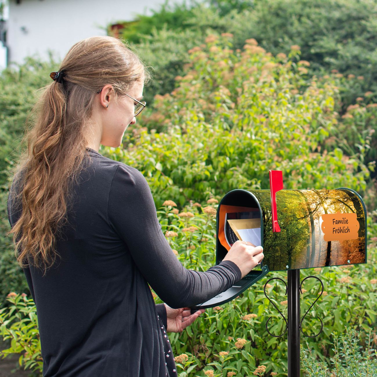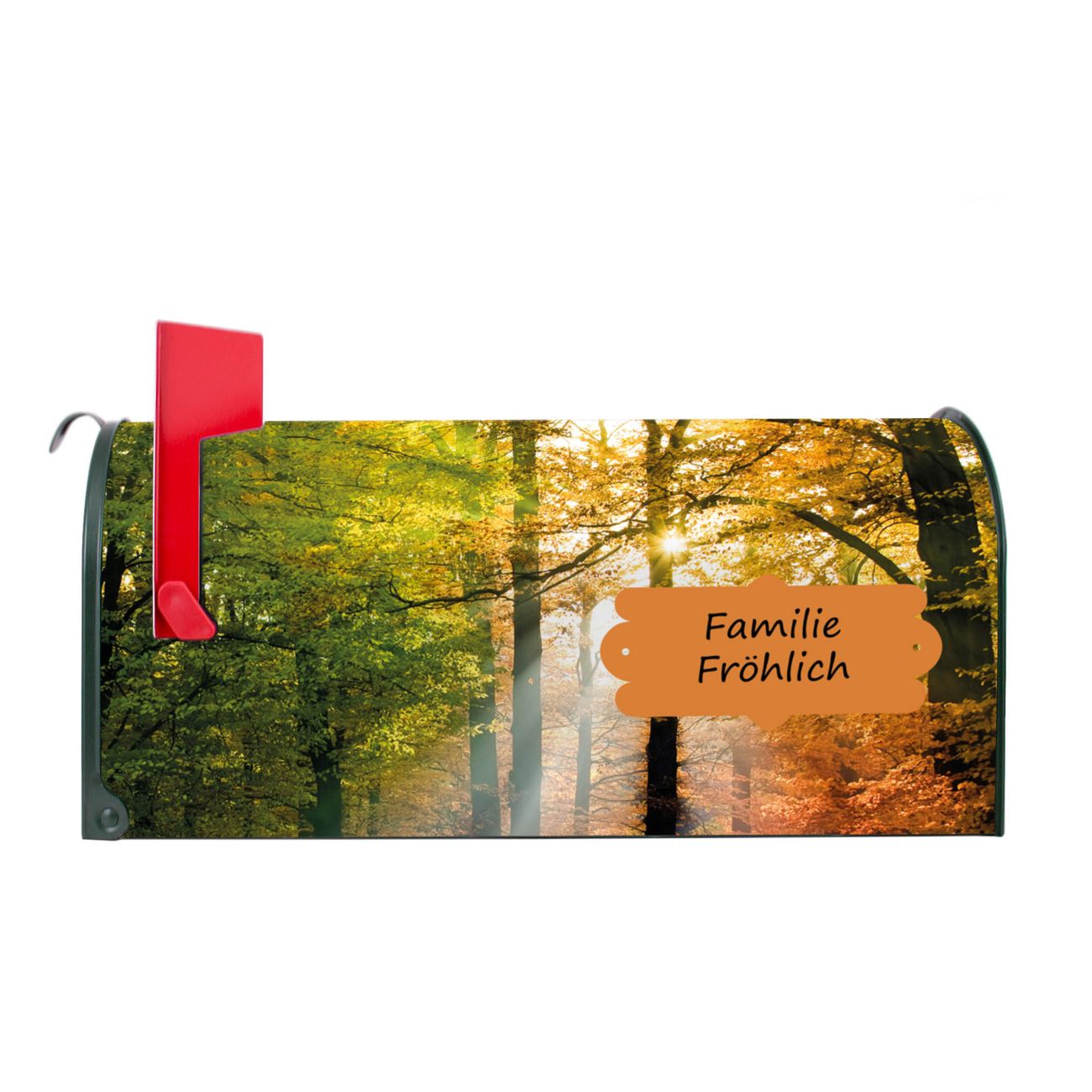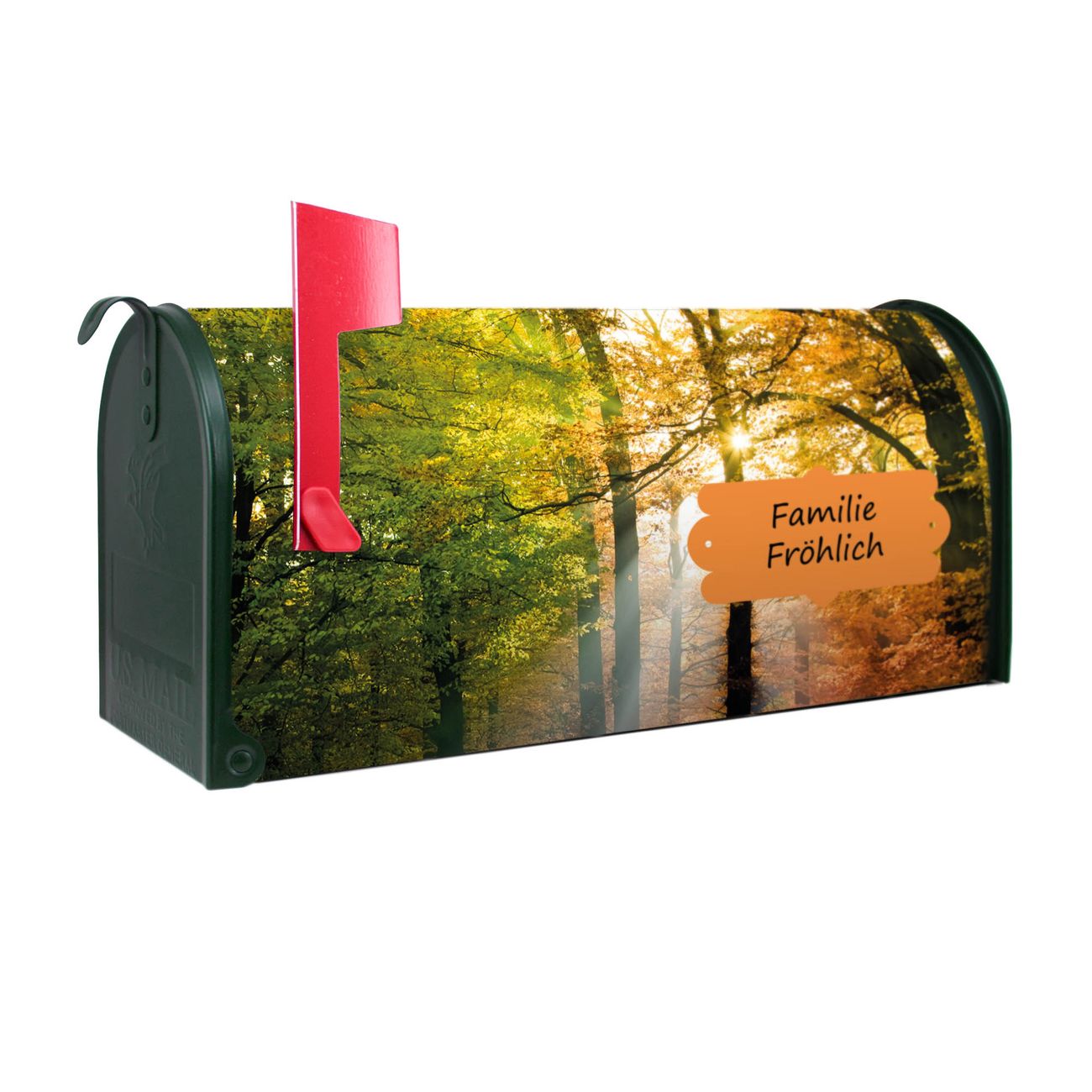 Unser amerikanischer Briefkasten mit dem Motiv Herbstwald hat ein sehr ansprechendes und ausgefallenes Design, ist in der Grundfarbe weiß, grün oder schwarz erhältlich. Damit entlocken Sie Ihren Nachbarn und dem Postboten immer wieder ein Lächeln. Die Mailbox ist ein Original Import aus Mississippi USA und wird von unserer kleinen Manufaktur in Sachsen von Hand veredelt. Die US-Mailbox bietet ausreichend Platz auch für große Sendungen, eine Fahne die Ihnen Post anzeigt, wetterfestes und äußerst stabiles Material - so macht Post empfangen Freude.