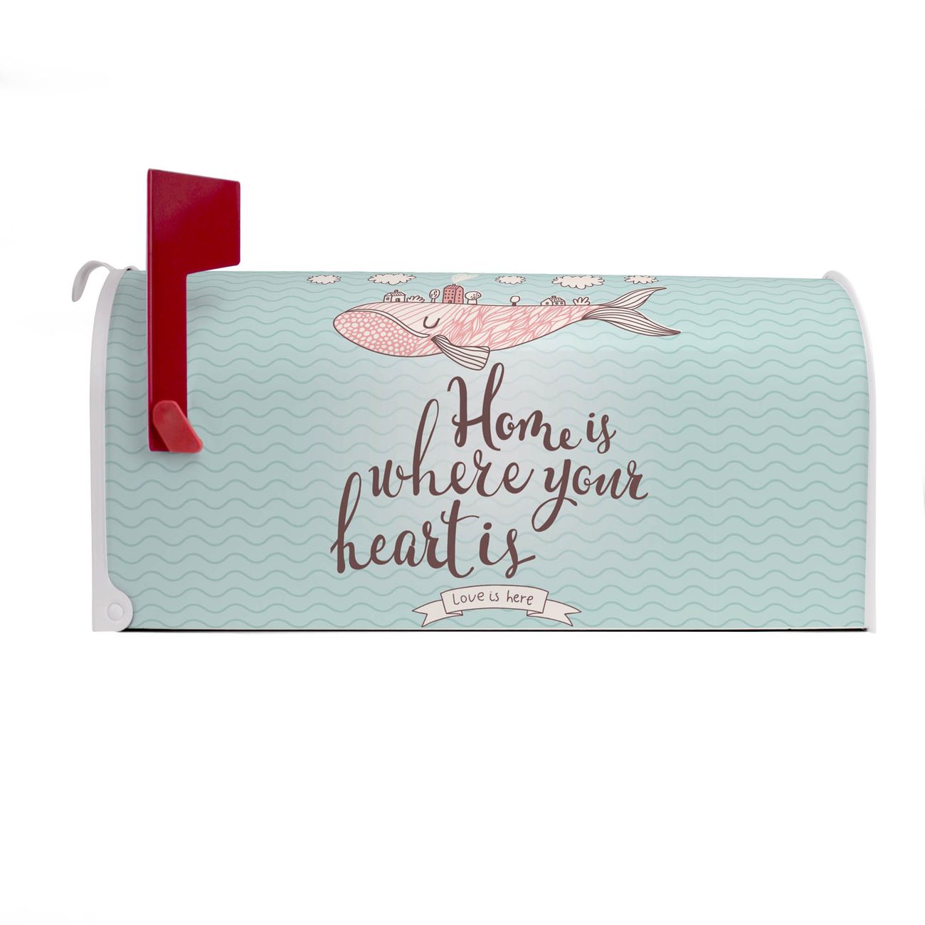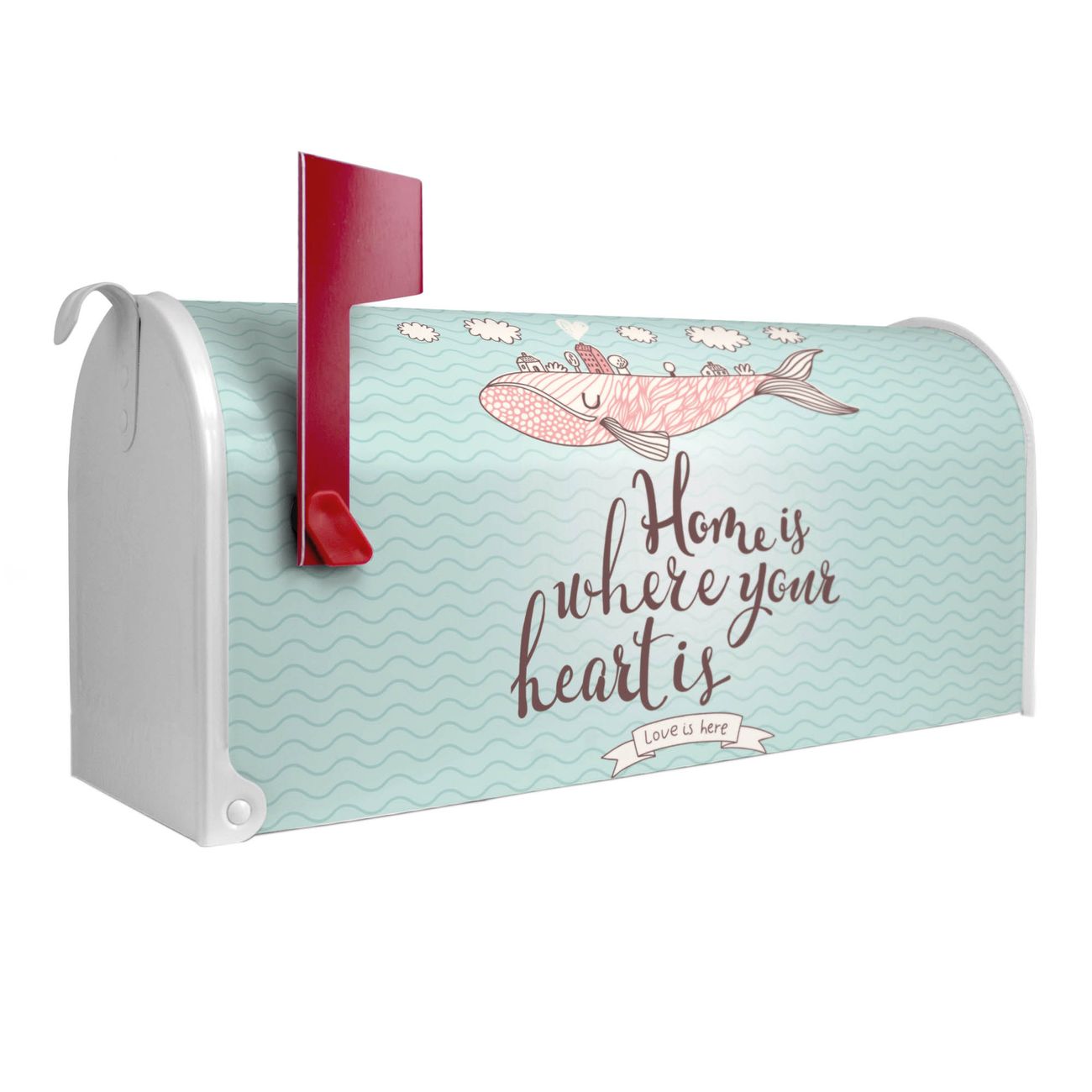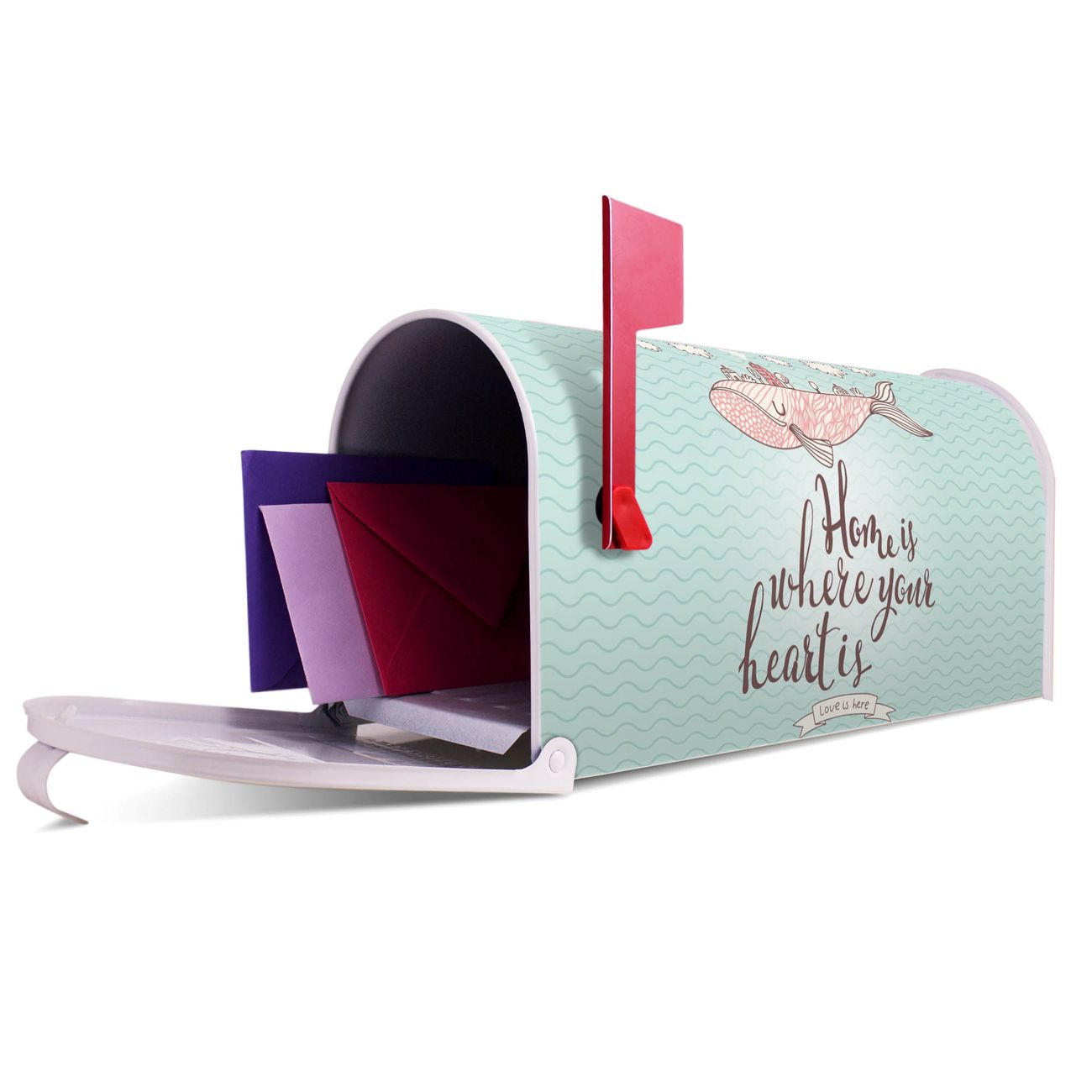 Unser amerikanischer Briefkasten mit dem Motiv Herzensangelegenheit hat ein sehr ansprechendes und ausgefallenes Design, ist in der Grundfarbe weiß, grün oder schwarz erhältlich. Damit entlocken Sie Ihren Nachbarn und dem Postboten immer wieder ein Lächeln. Die Mailbox ist ein Original Import aus Mississippi USA und wird von unserer kleinen Manufaktur in Sachsen von Hand veredelt. Die US-Mailbox bietet ausreichend Platz auch für große Sendungen, eine Fahne die Ihnen Post anzeigt, wetterfestes und äußerst stabiles Material - so macht Post empfangen Freude.