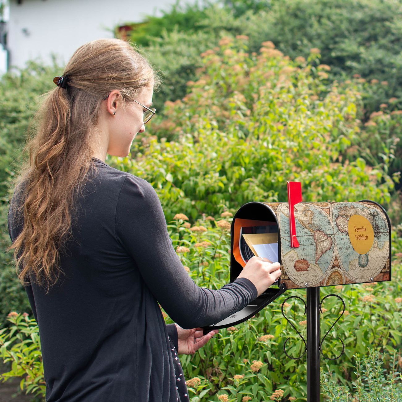 Unser amerikanischer Briefkasten mit dem Motiv Historische Weltkarte hat ein sehr ansprechendes und ausgefallenes Design, ist in der Grundfarbe weiß, grün oder schwarz erhältlich. Damit entlocken Sie Ihren Nachbarn und dem Postboten immer wieder ein Lächeln. Die Mailbox ist ein Original Import aus Mississippi USA und wird von unserer kleinen Manufaktur in Sachsen von Hand veredelt. Die US-Mailbox bietet ausreichend Platz auch für große Sendungen, eine Fahne die Ihnen Post anzeigt, wetterfestes und äußerst stabiles Material - so macht Post empfangen Freude.