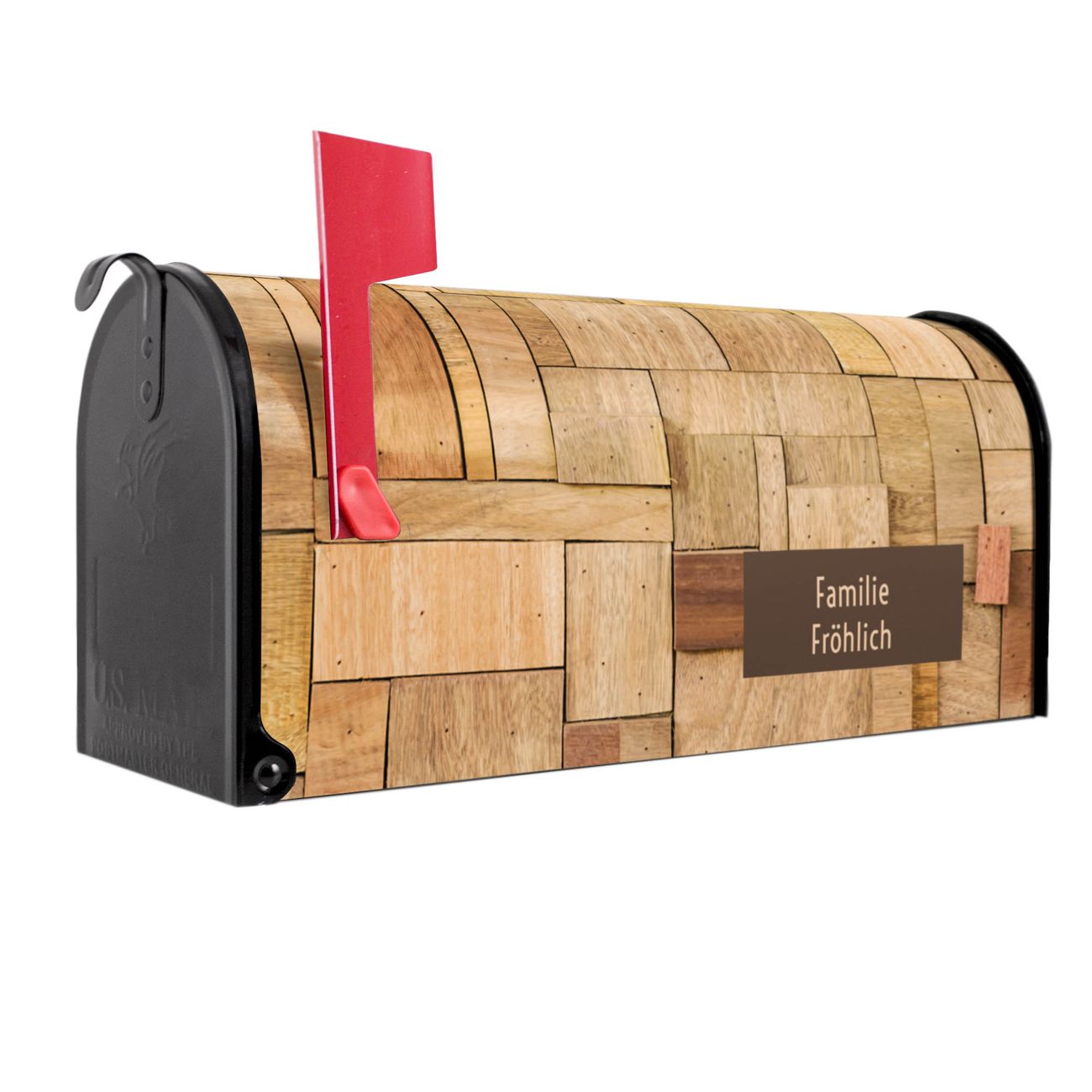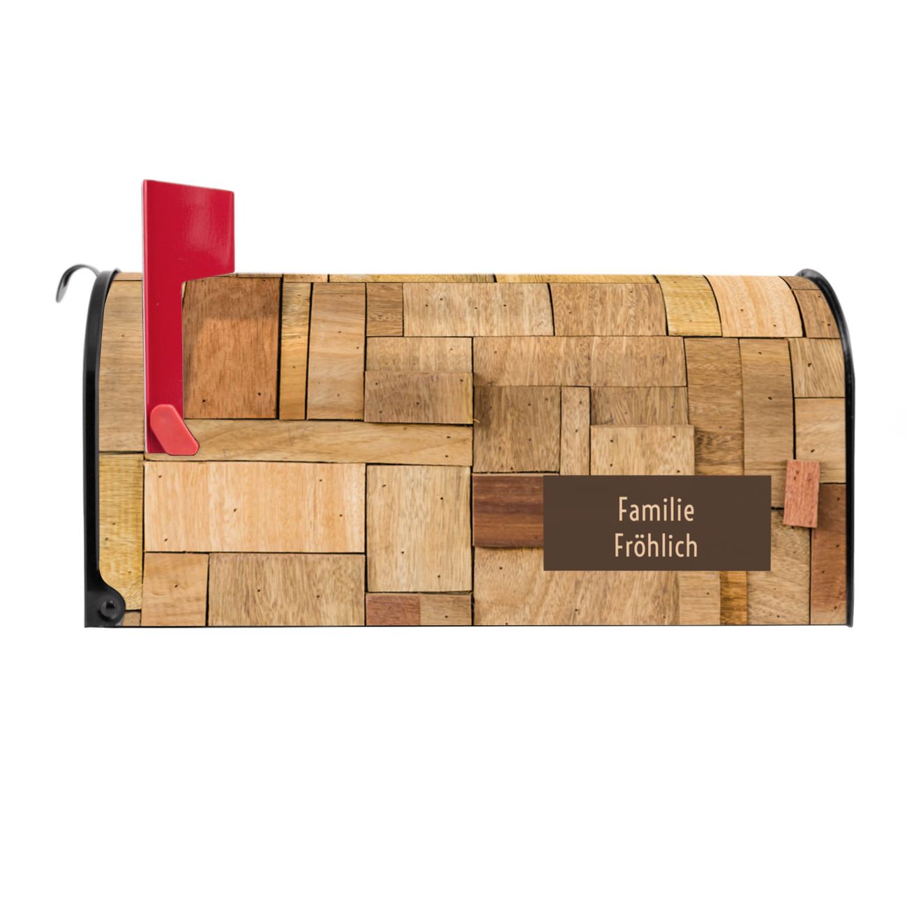 Der amerikanische Briefkasten von banjado mit Hölzernes Flickwerk Motiv bietet Ihnen ausreichend Fassungsvermögen, um große A4 Sendungen und Zeitschriften zu empfangen. Die typisch amerikanische rote Fahne zeigt Ihnen an, wenn Sie Post erhalten haben. Die US-Mailbox besteht aus verzinktem Stahlblech welches lackiert wurde und ist 48 x 22 x 16 CM (BxHxT) groß. Die Folie mit Motiv Hölzernes Flickwerk besteht aus einer wetter- und UV-resistenten Folie, die mit einem Schutzlaminat überzogen ist, sodass die US Mailbox zusätzlich vor Kratzern geschützt ist. An der Unterkante sind 4 Löcher je Seite um die Mailbox, typisch amerikanisch, an einem Holzpfahl oder einem Zaun zu befestigen. Auf Wunsch können Sie bei uns den passenden Standfuß oder die passende Wandhalterung kaufen um die US-Mailbox sicher zu befestigen. Wir bieten Ihnen ebenfalls Namensschilder, bereits beschriftet oder frei zu beschriften, und verschiedene selbst gestaltete Bitte-Keine-Werbung-Aufkleber.
