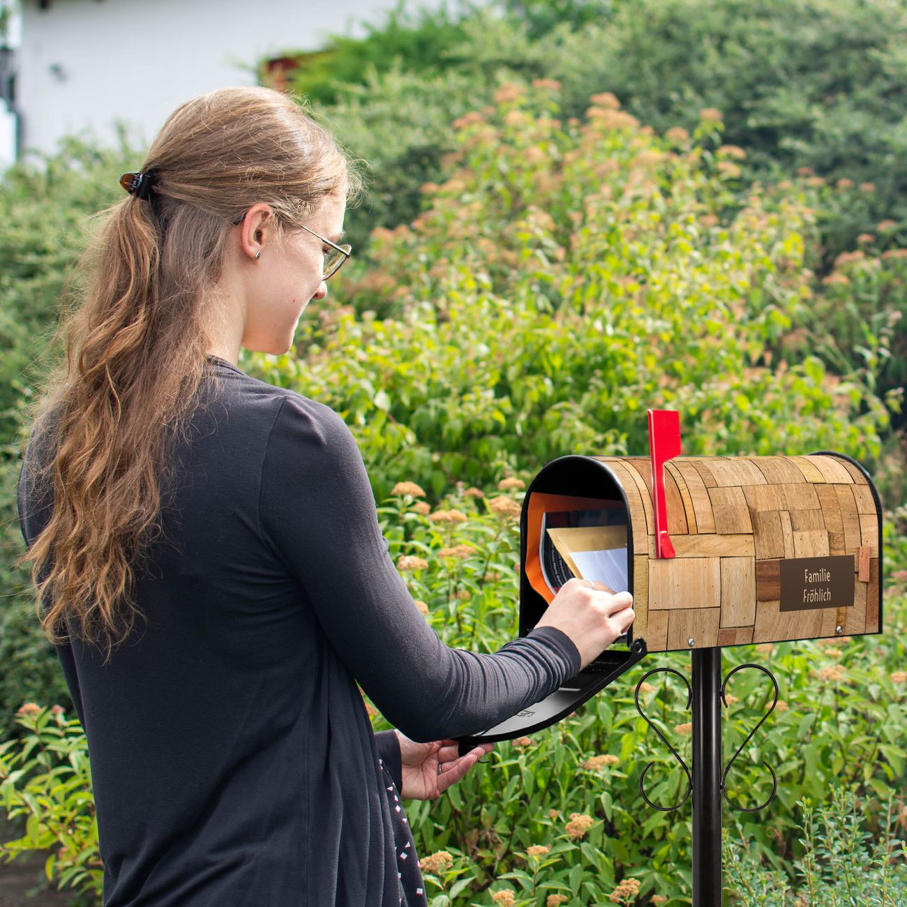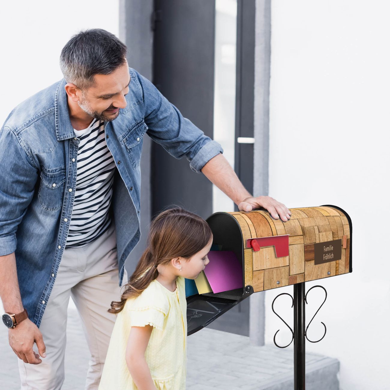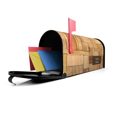Unser amerikanischer Briefkasten mit dem Motiv Hölzernes Flickwerk hat ein sehr ansprechendes und ausgefallenes Design, ist in der Grundfarbe weiß, grün oder schwarz erhältlich. Damit entlocken Sie Ihren Nachbarn und dem Postboten immer wieder ein Lächeln. Die Mailbox ist ein Original Import aus Mississippi USA und wird von unserer kleinen Manufaktur in Sachsen von Hand veredelt. Die US-Mailbox bietet ausreichend Platz auch für große Sendungen, eine Fahne die Ihnen Post anzeigt, wetterfestes und äußerst stabiles Material - so macht Post empfangen Freude.