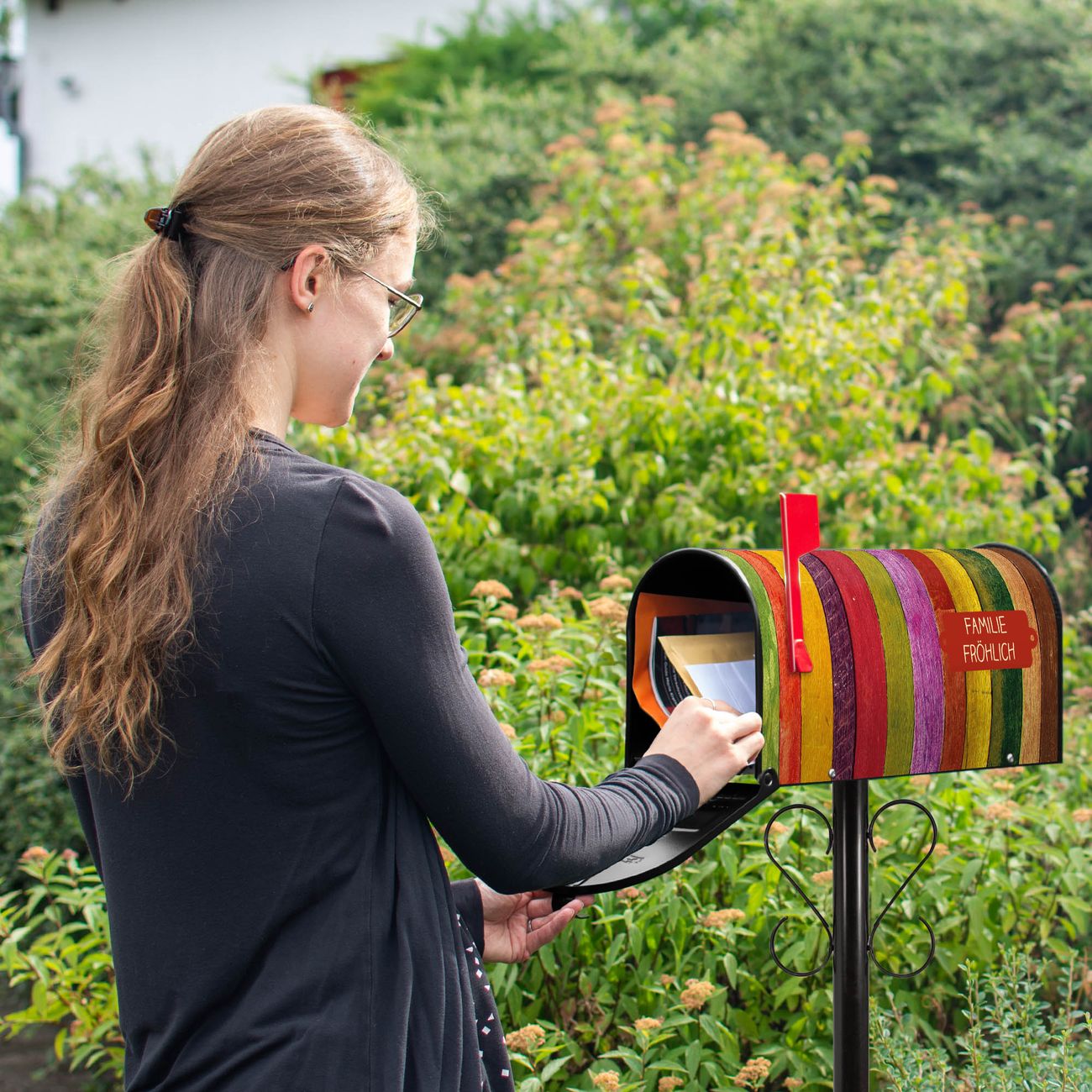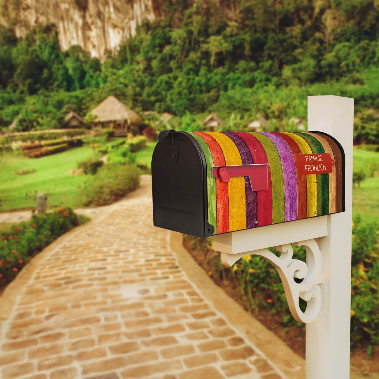 Unser amerikanischer Briefkasten mit dem Motiv Holz Collage Bunt hat ein sehr ansprechendes und ausgefallenes Design, ist in der Grundfarbe weiß, grün oder schwarz erhältlich. Damit entlocken Sie Ihren Nachbarn und dem Postboten immer wieder ein Lächeln. Die Mailbox ist ein Original Import aus Mississippi USA und wird von unserer kleinen Manufaktur in Sachsen von Hand veredelt. Die US-Mailbox bietet ausreichend Platz auch für große Sendungen, eine Fahne die Ihnen Post anzeigt, wetterfestes und äußerst stabiles Material - so macht Post empfangen Freude.