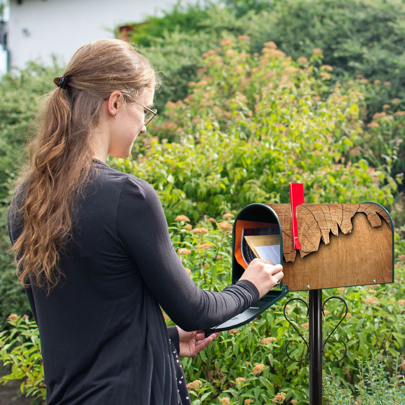 Unser amerikanischer Briefkasten mit dem Motiv Holz hat ein sehr ansprechendes und ausgefallenes Design, ist in der Grundfarbe weiß, grün oder schwarz erhältlich. Damit entlocken Sie Ihren Nachbarn und dem Postboten immer wieder ein Lächeln. Die Mailbox ist ein Original Import aus Mississippi USA und wird von unserer kleinen Manufaktur in Sachsen von Hand veredelt. Die US-Mailbox bietet ausreichend Platz auch für große Sendungen, eine Fahne die Ihnen Post anzeigt, wetterfestes und äußerst stabiles Material - so macht Post empfangen Freude.