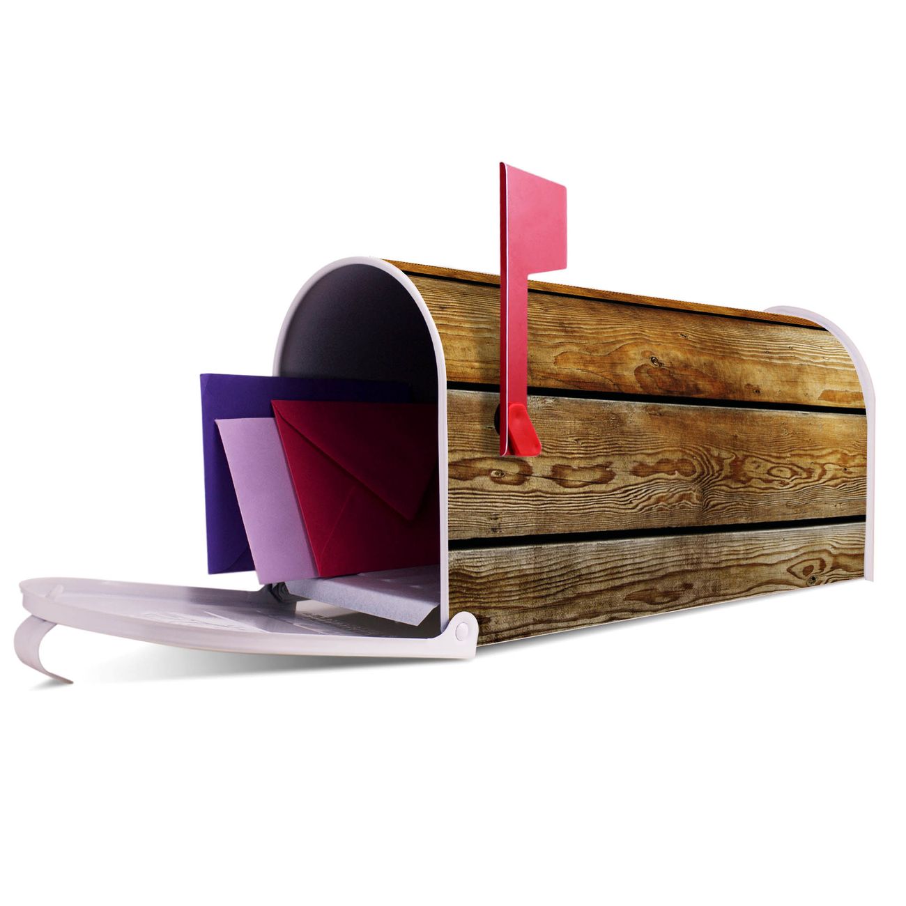 Unser amerikanischer Briefkasten mit dem Motiv Holzbretter hat ein sehr ansprechendes und ausgefallenes Design, ist in der Grundfarbe weiß, grün oder schwarz erhältlich. Damit entlocken Sie Ihren Nachbarn und dem Postboten immer wieder ein Lächeln. Die Mailbox ist ein Original Import aus Mississippi USA und wird von unserer kleinen Manufaktur in Sachsen von Hand veredelt. Die US-Mailbox bietet ausreichend Platz auch für große Sendungen, eine Fahne die Ihnen Post anzeigt, wetterfestes und äußerst stabiles Material - so macht Post empfangen Freude.