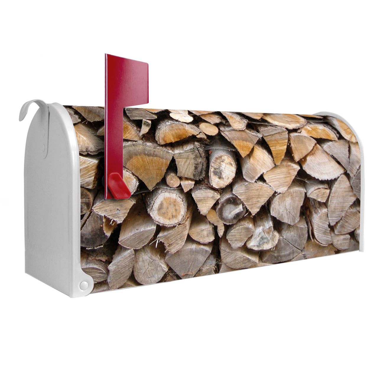Unser amerikanischer Briefkasten mit dem Motiv Holzstapel hat ein sehr ansprechendes und ausgefallenes Design, ist in der Grundfarbe weiß, grün oder schwarz erhältlich. Damit entlocken Sie Ihren Nachbarn und dem Postboten immer wieder ein Lächeln. Die Mailbox ist ein Original Import aus Mississippi USA und wird von unserer kleinen Manufaktur in Sachsen von Hand veredelt. Die US-Mailbox bietet ausreichend Platz auch für große Sendungen, eine Fahne die Ihnen Post anzeigt, wetterfestes und äußerst stabiles Material - so macht Post empfangen Freude.