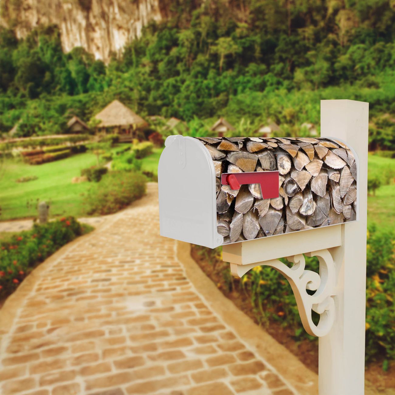 Amerikanischer Briefkasten Holzstapel