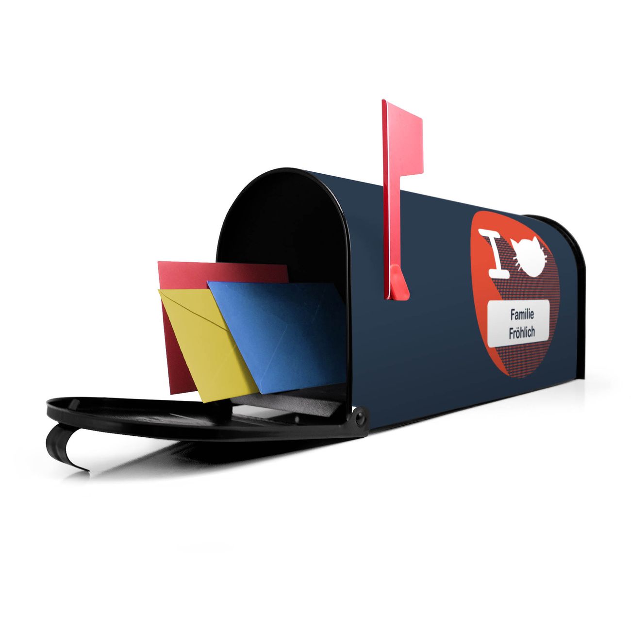 Unser amerikanischer Briefkasten mit dem Motiv I Love Cats hat ein sehr ansprechendes und ausgefallenes Design, ist in der Grundfarbe weiß, grün oder schwarz erhältlich. Damit entlocken Sie Ihren Nachbarn und dem Postboten immer wieder ein Lächeln. Die Mailbox ist ein Original Import aus Mississippi USA und wird von unserer kleinen Manufaktur in Sachsen von Hand veredelt. Die US-Mailbox bietet ausreichend Platz auch für große Sendungen, eine Fahne die Ihnen Post anzeigt, wetterfestes und äußerst stabiles Material - so macht Post empfangen Freude.