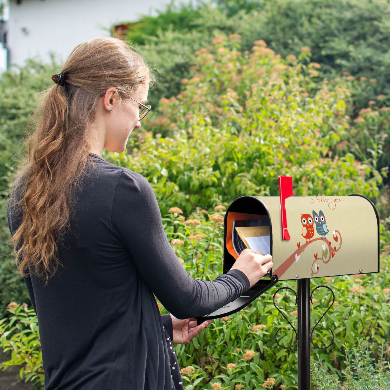 Unser amerikanischer Briefkasten mit dem Motiv I Love You hat ein sehr ansprechendes und ausgefallenes Design, ist in der Grundfarbe weiß, grün oder schwarz erhältlich. Damit entlocken Sie Ihren Nachbarn und dem Postboten immer wieder ein Lächeln. Die Mailbox ist ein Original Import aus Mississippi USA und wird von unserer kleinen Manufaktur in Sachsen von Hand veredelt. Die US-Mailbox bietet ausreichend Platz auch für große Sendungen, eine Fahne die Ihnen Post anzeigt, wetterfestes und äußerst stabiles Material - so macht Post empfangen Freude.