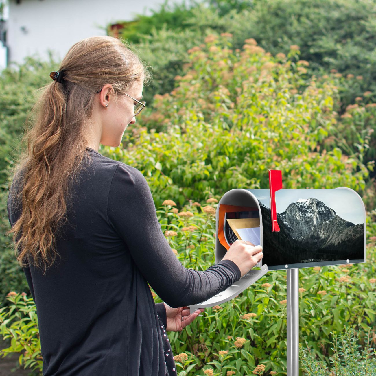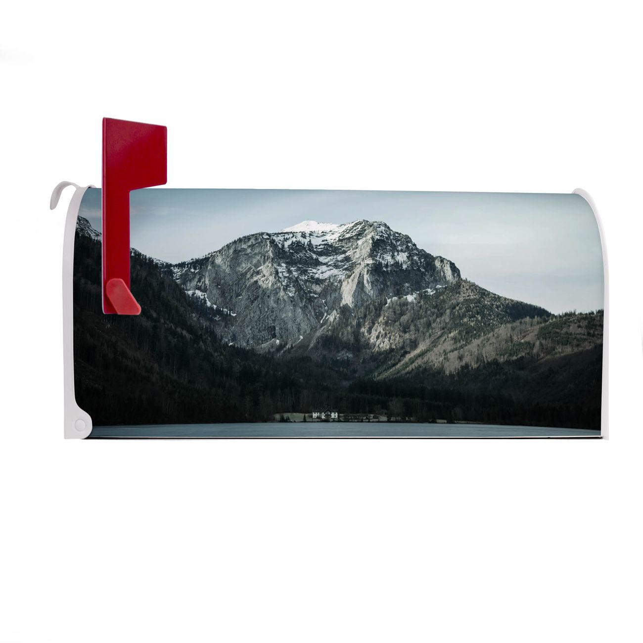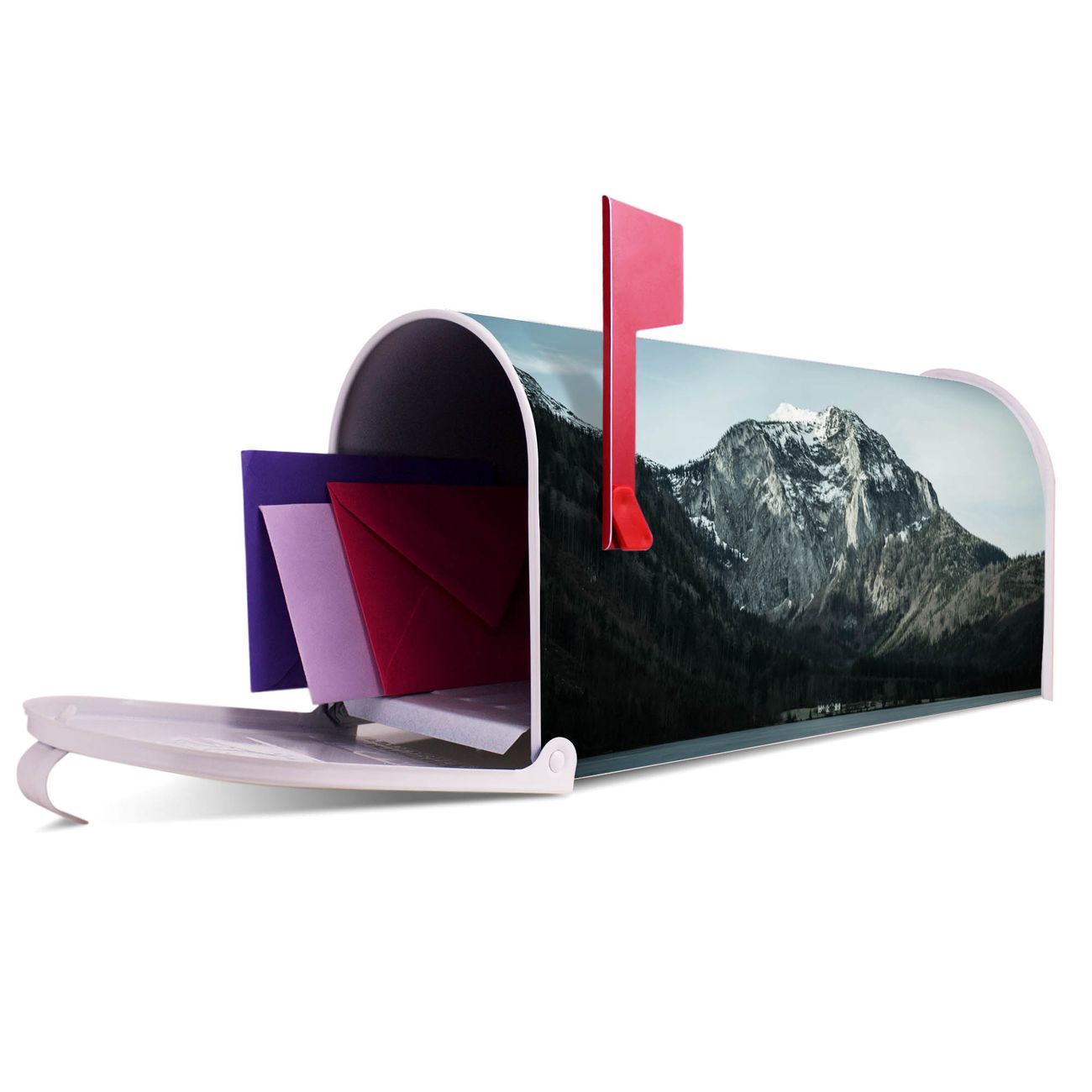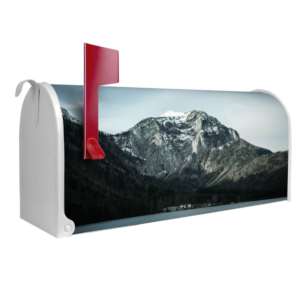 Unser amerikanischer Briefkasten mit dem Motiv Im Schatten des Bergs hat ein sehr ansprechendes und ausgefallenes Design, ist in der Grundfarbe weiß, grün oder schwarz erhältlich. Damit entlocken Sie Ihren Nachbarn und dem Postboten immer wieder ein Lächeln. Die Mailbox ist ein Original Import aus Mississippi USA und wird von unserer kleinen Manufaktur in Sachsen von Hand veredelt. Die US-Mailbox bietet ausreichend Platz auch für große Sendungen, eine Fahne die Ihnen Post anzeigt, wetterfestes und äußerst stabiles Material - so macht Post empfangen Freude.