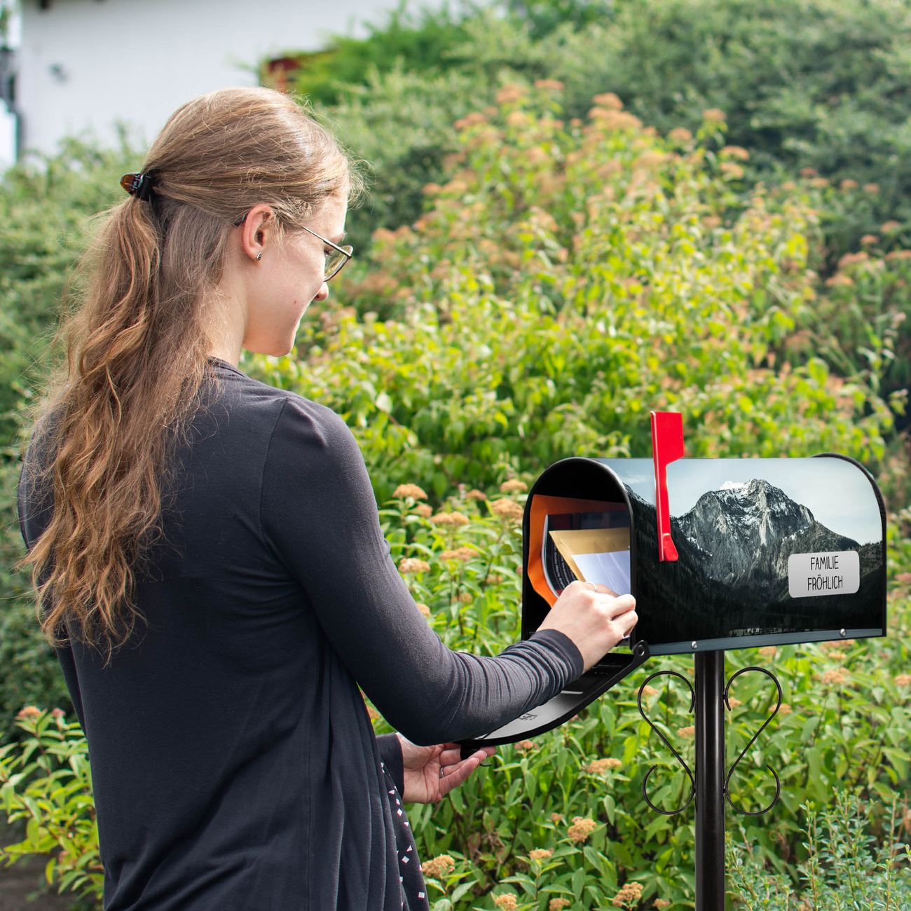 Unser amerikanischer Briefkasten mit dem Motiv Im Schatten des Bergs hat ein sehr ansprechendes und ausgefallenes Design, ist in der Grundfarbe weiß, grün oder schwarz erhältlich. Damit entlocken Sie Ihren Nachbarn und dem Postboten immer wieder ein Lächeln. Die Mailbox ist ein Original Import aus Mississippi USA und wird von unserer kleinen Manufaktur in Sachsen von Hand veredelt. Die US-Mailbox bietet ausreichend Platz auch für große Sendungen, eine Fahne die Ihnen Post anzeigt, wetterfestes und äußerst stabiles Material - so macht Post empfangen Freude.