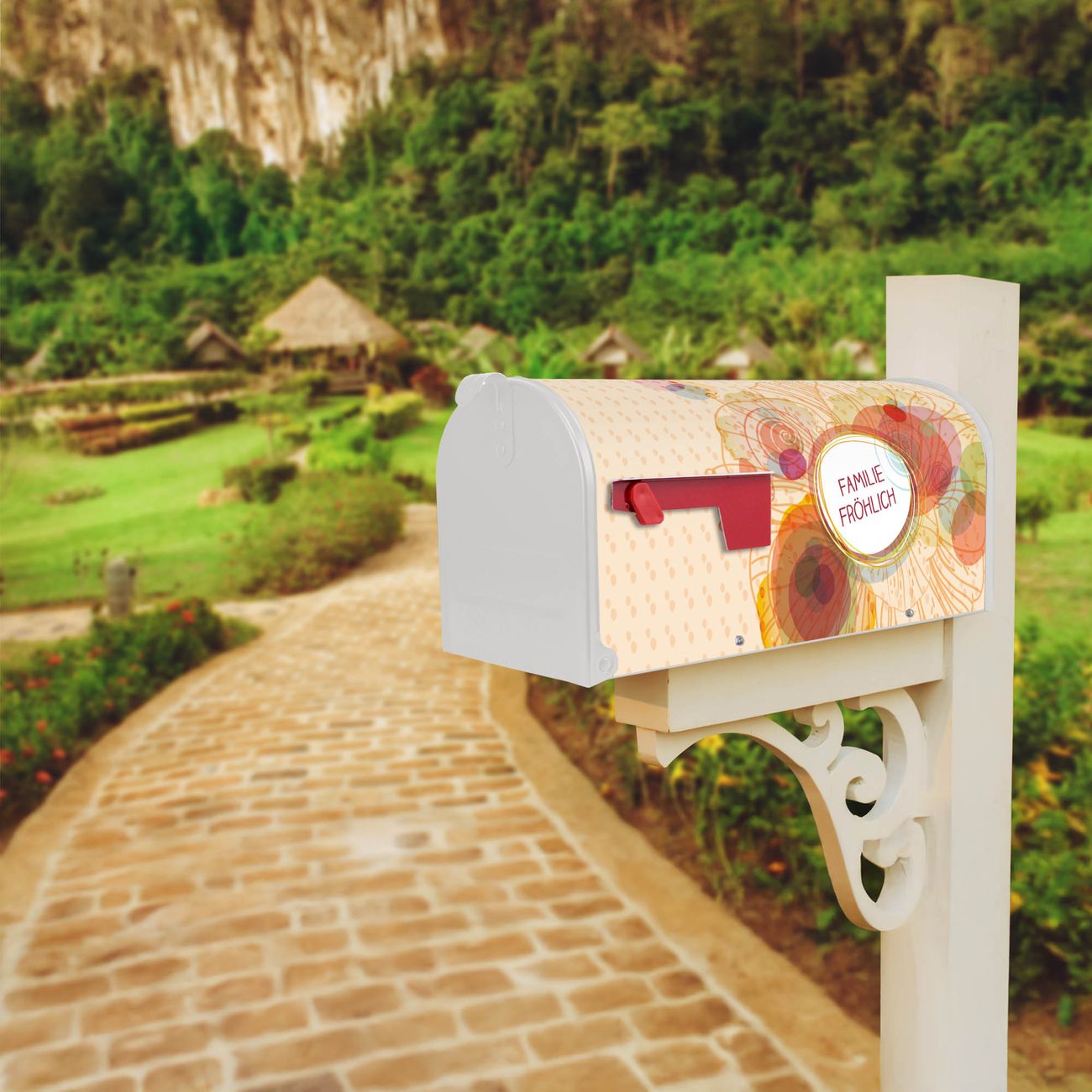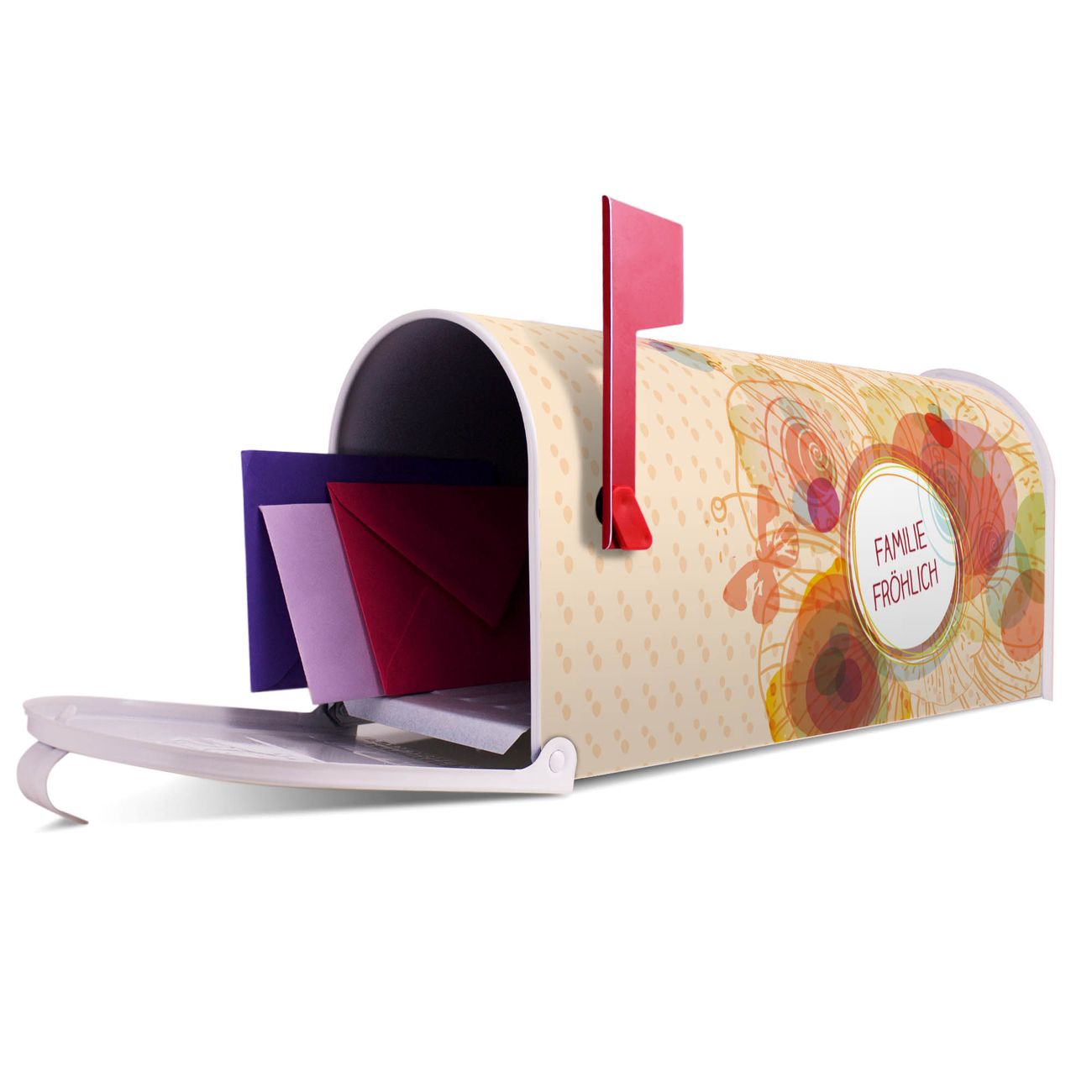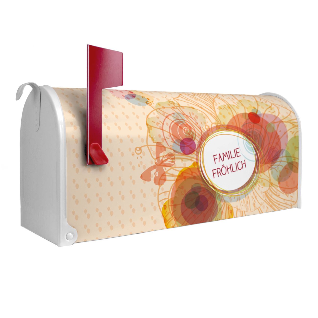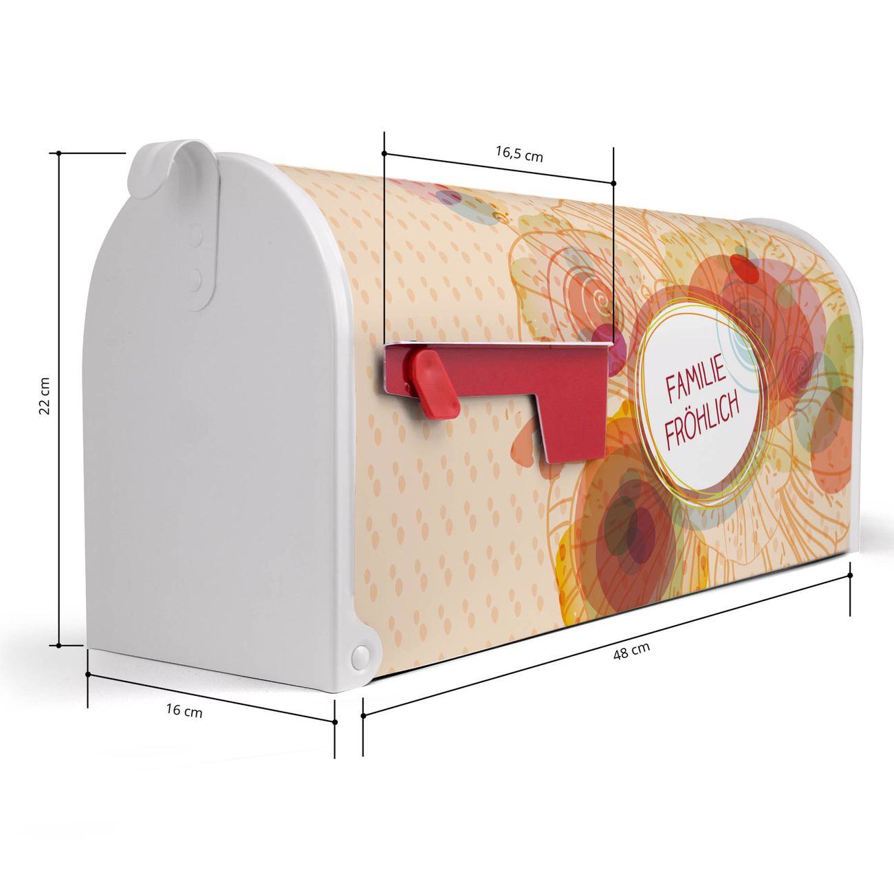Der amerikanische Briefkasten von banjado mit WT Im Sommer Motiv bietet Ihnen ausreichend Fassungsvermögen, um große A4 Sendungen und Zeitschriften zu empfangen. Die typisch amerikanische rote Fahne zeigt Ihnen an, wenn Sie Post erhalten haben. Die US-Mailbox besteht aus verzinktem Stahlblech welches lackiert wurde und ist 48 x 22 x 16 CM (BxHxT) groß. Die Folie mit Motiv WT Im Sommer besteht aus einer wetter- und UV-resistenten Folie, die mit einem Schutzlaminat überzogen ist, sodass die US Mailbox zusätzlich vor Kratzern geschützt ist. An der Unterkante sind 4 Löcher je Seite um die Mailbox, typisch amerikanisch, an einem Holzpfahl oder einem Zaun zu befestigen. Auf Wunsch können Sie bei uns den passenden Standfuß oder die passende Wandhalterung kaufen um die US-Mailbox sicher zu befestigen. Wir bieten Ihnen ebenfalls Namensschilder, bereits beschriftet oder frei zu beschriften, und verschiedene selbst gestaltete Bitte-Keine-Werbung-Aufkleber.