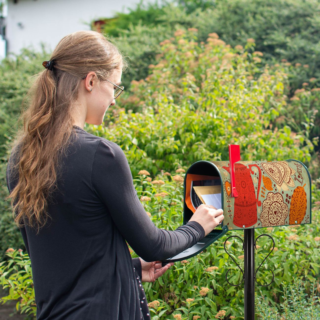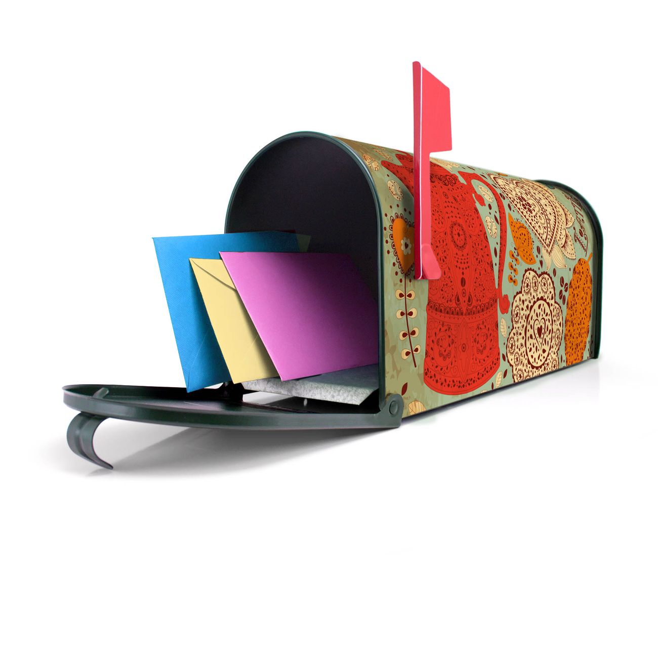 Unser amerikanischer Briefkasten mit dem Motiv Indischer Kaffee hat ein sehr ansprechendes und ausgefallenes Design, ist in der Grundfarbe weiß, grün oder schwarz erhältlich. Damit entlocken Sie Ihren Nachbarn und dem Postboten immer wieder ein Lächeln. Die Mailbox ist ein Original Import aus Mississippi USA und wird von unserer kleinen Manufaktur in Sachsen von Hand veredelt. Die US-Mailbox bietet ausreichend Platz auch für große Sendungen, eine Fahne die Ihnen Post anzeigt, wetterfestes und äußerst stabiles Material - so macht Post empfangen Freude.