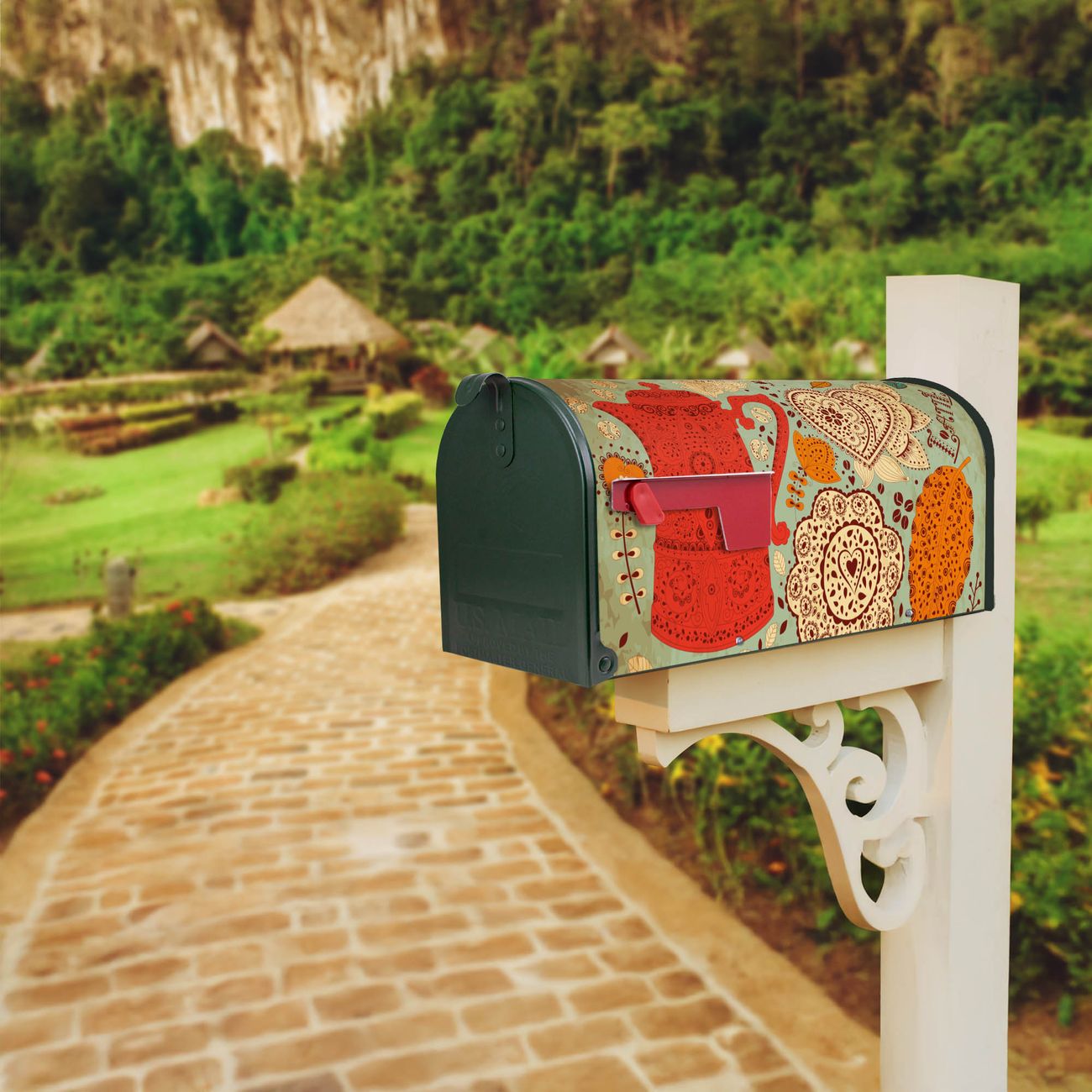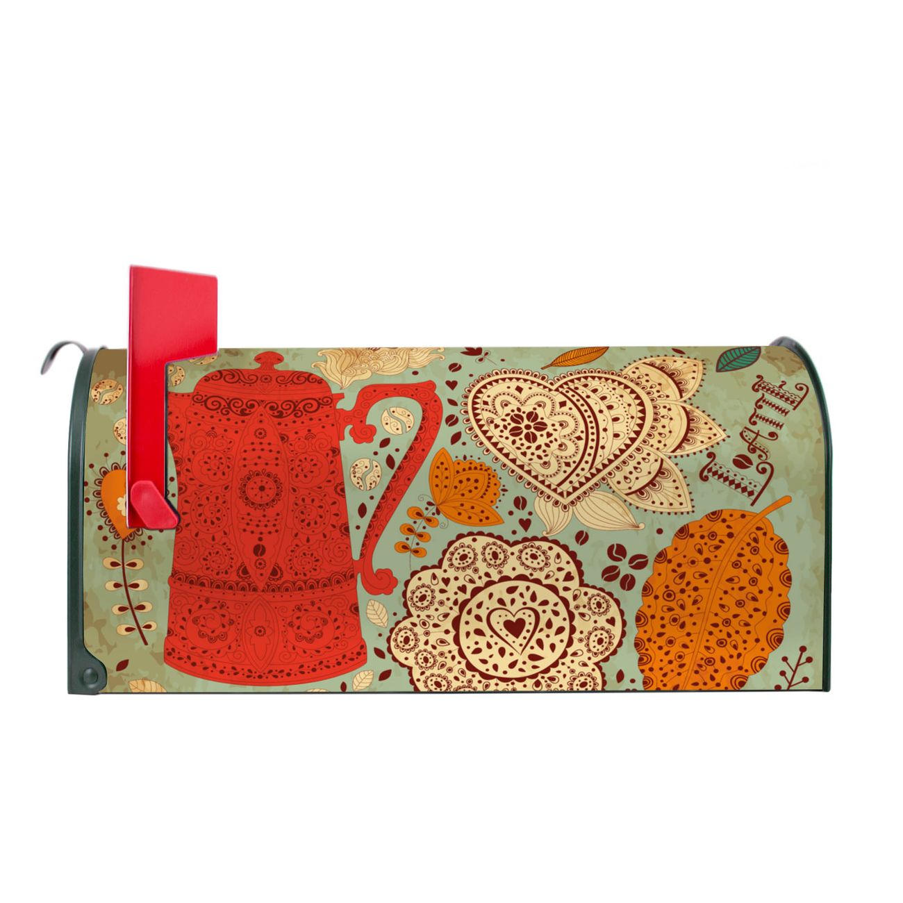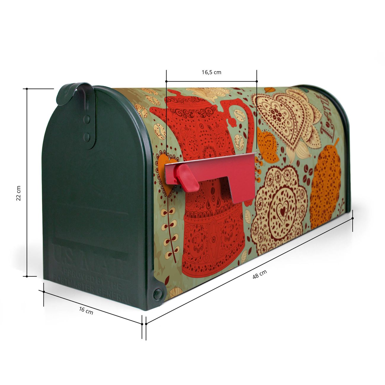 Der amerikanische Briefkasten von banjado mit Indischer Kaffee Motiv bietet Ihnen ausreichend Fassungsvermögen, um große A4 Sendungen und Zeitschriften zu empfangen. Die typisch amerikanische rote Fahne zeigt Ihnen an, wenn Sie Post erhalten haben. Die US-Mailbox besteht aus verzinktem Stahlblech welches lackiert wurde und ist 48 x 22 x 16 CM (BxHxT) groß. Die Folie mit Motiv Indischer Kaffee besteht aus einer wetter- und UV-resistenten Folie, die mit einem Schutzlaminat überzogen ist, sodass die US Mailbox zusätzlich vor Kratzern geschützt ist. An der Unterkante sind 4 Löcher je Seite um die Mailbox, typisch amerikanisch, an einem Holzpfahl oder einem Zaun zu befestigen. Auf Wunsch können Sie bei uns den passenden Standfuß oder die passende Wandhalterung kaufen um die US-Mailbox sicher zu befestigen. Wir bieten Ihnen ebenfalls Namensschilder, bereits beschriftet oder frei zu beschriften, und verschiedene selbst gestaltete Bitte-Keine-Werbung-Aufkleber.