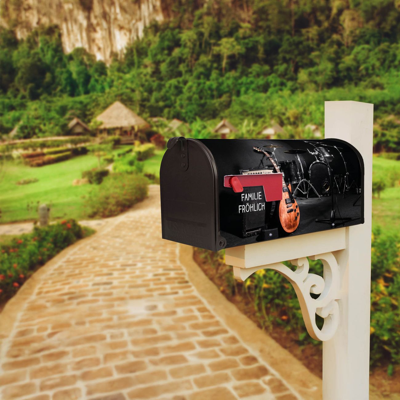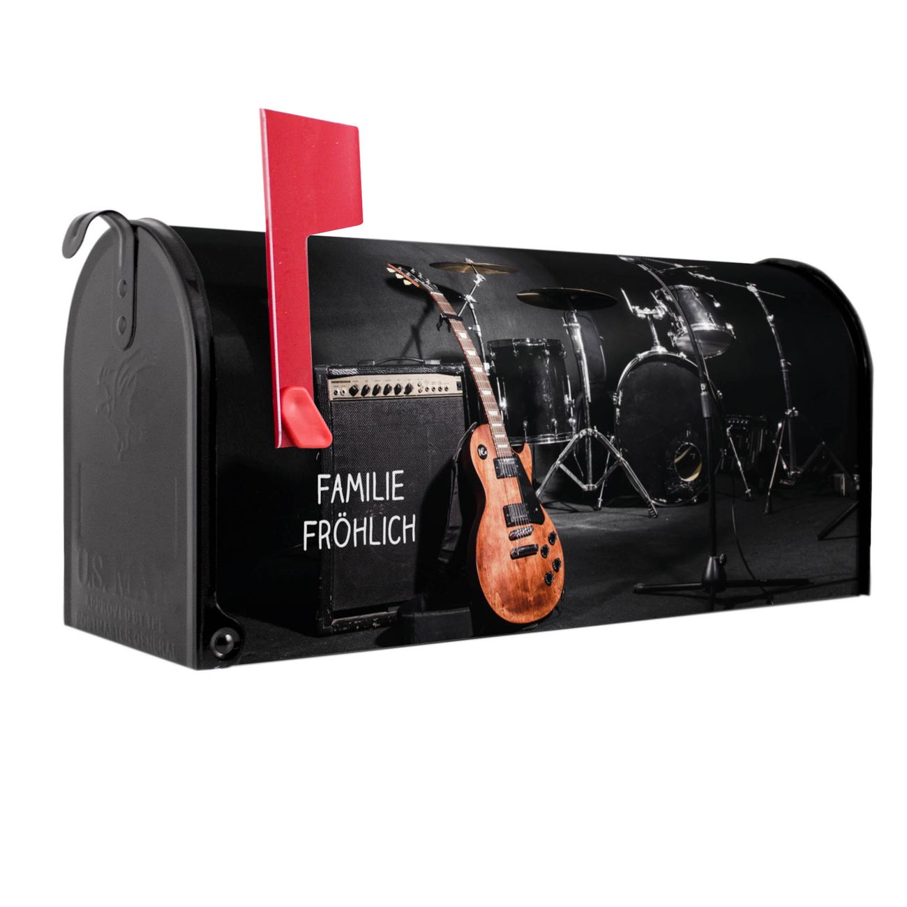 Unser amerikanischer Briefkasten mit dem Motiv Jam Session hat ein sehr ansprechendes und ausgefallenes Design, ist in der Grundfarbe weiß, grün oder schwarz erhältlich. Damit entlocken Sie Ihren Nachbarn und dem Postboten immer wieder ein Lächeln. Die Mailbox ist ein Original Import aus Mississippi USA und wird von unserer kleinen Manufaktur in Sachsen von Hand veredelt. Die US-Mailbox bietet ausreichend Platz auch für große Sendungen, eine Fahne die Ihnen Post anzeigt, wetterfestes und äußerst stabiles Material - so macht Post empfangen Freude.
