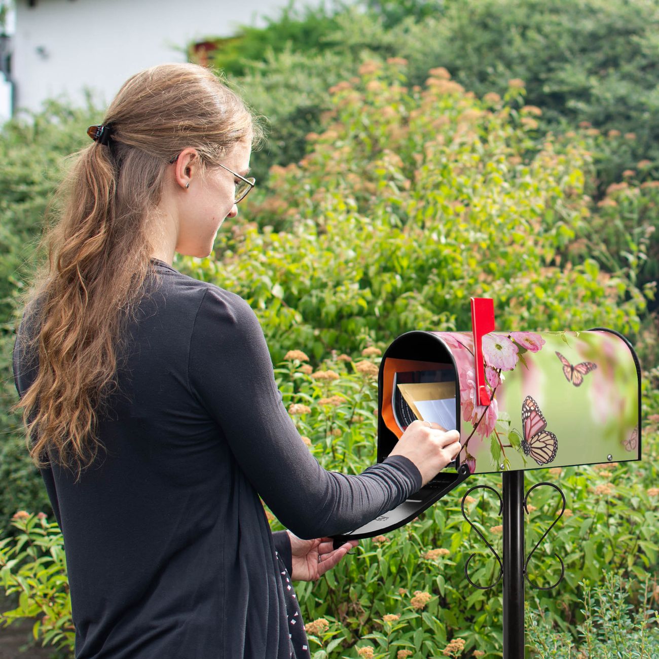 Unser amerikanischer Briefkasten mit dem Motiv Japanische Kirschblüte hat ein sehr ansprechendes und ausgefallenes Design, ist in der Grundfarbe weiß, grün oder schwarz erhältlich. Damit entlocken Sie Ihren Nachbarn und dem Postboten immer wieder ein Lächeln. Die Mailbox ist ein Original Import aus Mississippi USA und wird von unserer kleinen Manufaktur in Sachsen von Hand veredelt. Die US-Mailbox bietet ausreichend Platz auch für große Sendungen, eine Fahne die Ihnen Post anzeigt, wetterfestes und äußerst stabiles Material - so macht Post empfangen Freude.