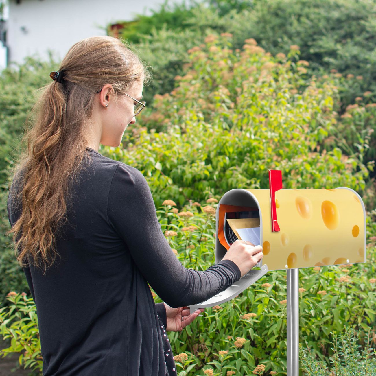 Unser amerikanischer Briefkasten mit dem Motiv Käse hat ein sehr ansprechendes und ausgefallenes Design, ist in der Grundfarbe weiß, grün oder schwarz erhältlich. Damit entlocken Sie Ihren Nachbarn und dem Postboten immer wieder ein Lächeln. Die Mailbox ist ein Original Import aus Mississippi USA und wird von unserer kleinen Manufaktur in Sachsen von Hand veredelt. Die US-Mailbox bietet ausreichend Platz auch für große Sendungen, eine Fahne die Ihnen Post anzeigt, wetterfestes und äußerst stabiles Material - so macht Post empfangen Freude.