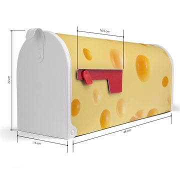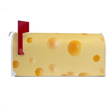 Der amerikanische Briefkasten von banjado mit Käse Motiv bietet Ihnen ausreichend Fassungsvermögen, um große A4 Sendungen und Zeitschriften zu empfangen. Die typisch amerikanische rote Fahne zeigt Ihnen an, wenn Sie Post erhalten haben. Die US-Mailbox besteht aus verzinktem Stahlblech welches lackiert wurde und ist 48 x 22 x 16 CM (BxHxT) groß. Die Folie mit Motiv Käse besteht aus einer wetter- und UV-resistenten Folie, die mit einem Schutzlaminat überzogen ist, sodass die US Mailbox zusätzlich vor Kratzern geschützt ist. An der Unterkante sind 4 Löcher je Seite um die Mailbox, typisch amerikanisch, an einem Holzpfahl oder einem Zaun zu befestigen. Auf Wunsch können Sie bei uns den passenden Standfuß oder die passende Wandhalterung kaufen um die US-Mailbox sicher zu befestigen. Wir bieten Ihnen ebenfalls Namensschilder, bereits beschriftet oder frei zu beschriften, und verschiedene selbst gestaltete Bitte-Keine-Werbung-Aufkleber.