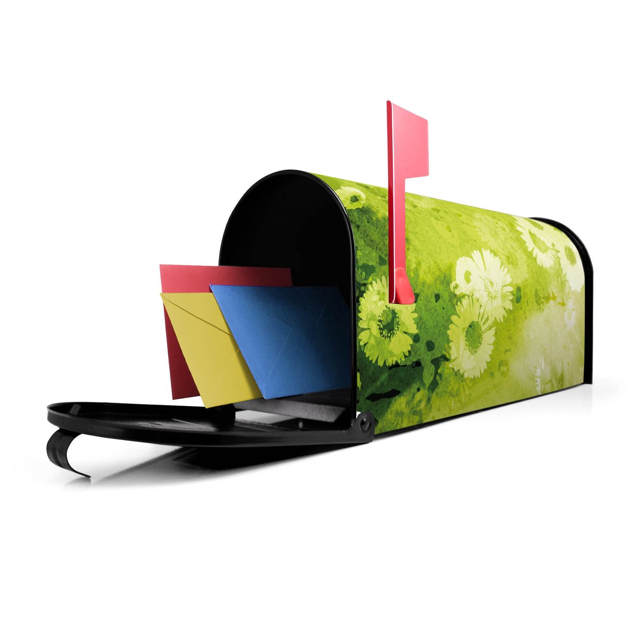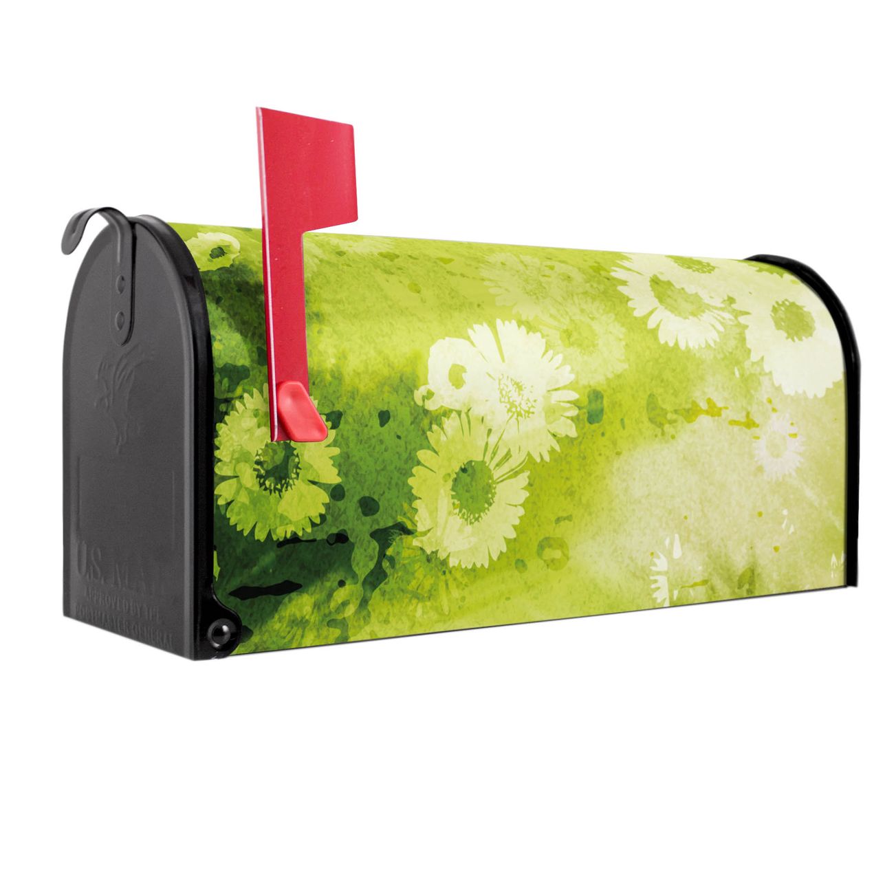 Unser amerikanischer Briefkasten mit dem Motiv Kamille Grün hat ein sehr ansprechendes und ausgefallenes Design, ist in der Grundfarbe weiß, grün oder schwarz erhältlich. Damit entlocken Sie Ihren Nachbarn und dem Postboten immer wieder ein Lächeln. Die Mailbox ist ein Original Import aus Mississippi USA und wird von unserer kleinen Manufaktur in Sachsen von Hand veredelt. Die US-Mailbox bietet ausreichend Platz auch für große Sendungen, eine Fahne die Ihnen Post anzeigt, wetterfestes und äußerst stabiles Material - so macht Post empfangen Freude.