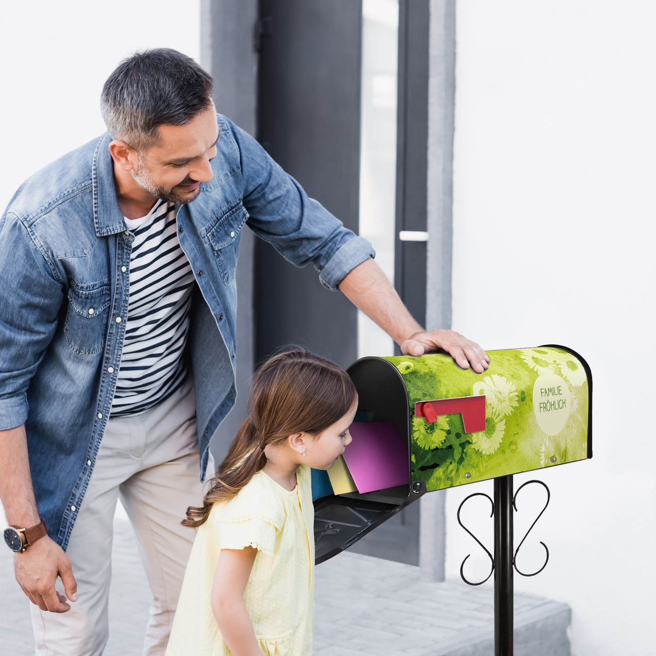 Unser amerikanischer Briefkasten mit dem Motiv Kamille Grün hat ein sehr ansprechendes und ausgefallenes Design, ist in der Grundfarbe weiß, grün oder schwarz erhältlich. Damit entlocken Sie Ihren Nachbarn und dem Postboten immer wieder ein Lächeln. Die Mailbox ist ein Original Import aus Mississippi USA und wird von unserer kleinen Manufaktur in Sachsen von Hand veredelt. Die US-Mailbox bietet ausreichend Platz auch für große Sendungen, eine Fahne die Ihnen Post anzeigt, wetterfestes und äußerst stabiles Material - so macht Post empfangen Freude.