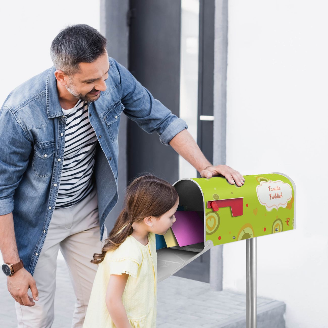 Unser amerikanischer Briefkasten mit dem Motiv WT Kinderland hat ein sehr ansprechendes und ausgefallenes Design, ist in der Grundfarbe weiß, grün oder schwarz erhältlich. Damit entlocken Sie Ihren Nachbarn und dem Postboten immer wieder ein Lächeln. Die Mailbox ist ein Original Import aus Mississippi USA und wird von unserer kleinen Manufaktur in Sachsen von Hand veredelt. Die US-Mailbox bietet ausreichend Platz auch für große Sendungen, eine Fahne die Ihnen Post anzeigt, wetterfestes und äußerst stabiles Material - so macht Post empfangen Freude.